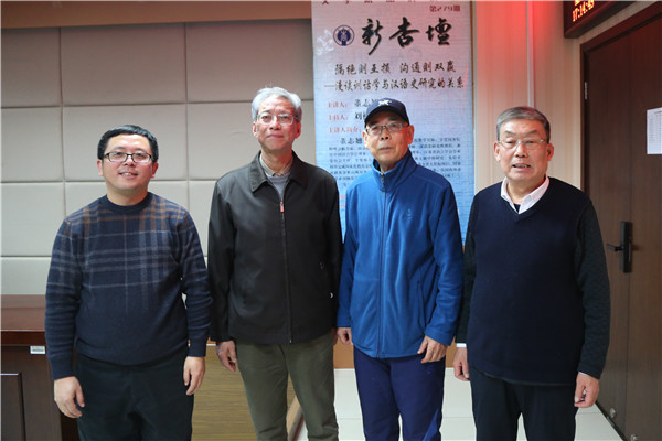 此后,董先生结合具体例证阐述了训诂学和汉语史研究之间的相互作用。一方面,汉语史研究必须重视训诂。他通过列举一系列汉语史研究者在训诂方面曾犯的错误,指出摒弃训诂学的汉语史研究,往往会得出错误结论。另一方面,汉语史的研究成果同样能为古文献训诂提供有力的帮助。同样,他也通过列举几个在训诂中利用汉语史研究成果的例子,对这一方面展开了详实而生动的论述。董先生总结到,训诂学和汉语史虽然产生于东西方文化的不同背景,有着各自目的及研究内容,但它们的研究对象都主要是以历代流传下来的文献语言材料为依据,因此二者又存在着难以截然分离的密切联系。在提倡多学科融合的今天,更应该将汉语史研究与训诂研究有机结合起来。