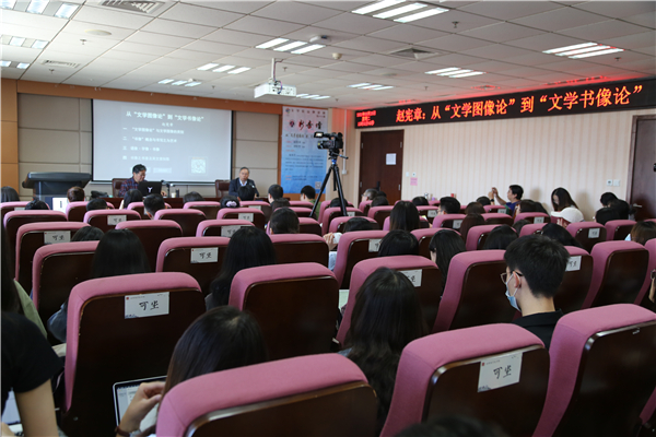 5月25日15时,中国文艺理论学会副会长,南京大学文学院教授赵宪章做客“新杏坛”,在知新楼A620报告厅作题为“从‘文学图像论’到‘文学书像论’”的讲座。讲座由山东大学文艺美学研究中心主任谭好哲主持。山东大学文艺学专业教授杨建刚、韩清玉以及文学院众多师生共同聆听了本次讲座。