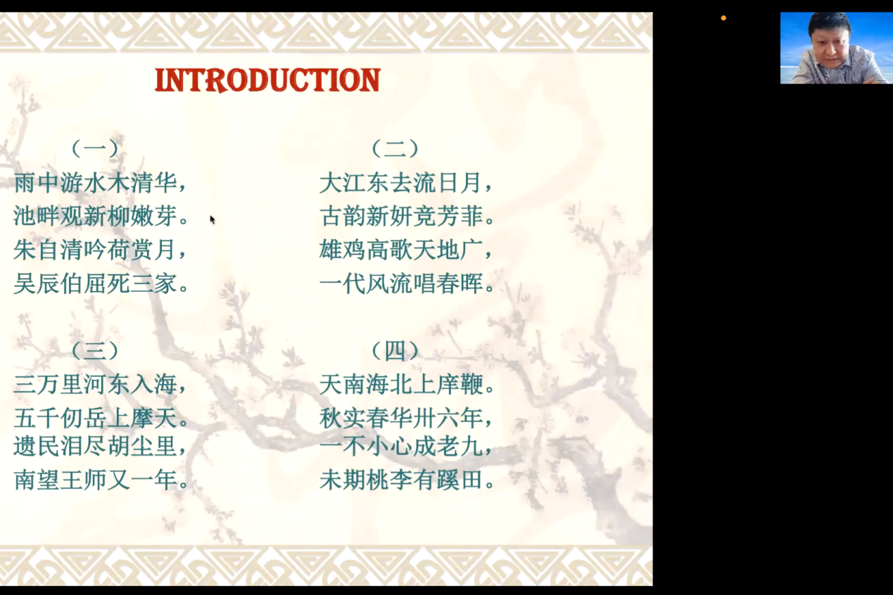 为进一步说明语言性质与诗歌形式的关系,张洪明以日本的俳句为例,指出俳句的“五七五”格式的基本单位不是音节而是韵素,因为日语与汉语不同,是重量敏感型语言。而梵语虽同为重量敏感型语言,但其轻重音节、开闭音节的数量基本对等,很容易形成对立,因此发展出轻重音节二元对立的格律模式,日语则不具有这样的条件。接下来,张洪明指出俳句的“五七五”格式是把汉语的五绝和七绝结合在一起,形成的一种参差残缺的形式,这种形式与日本文化对残缺之美的极致推崇有关。因此,诗歌形式的建构同时受特定语言性质和特定美学文化价值观的共同影响。此外,张洪明还提出了内容对应加形式对应的诗歌翻译原则,并展示了自己的翻译作品供大家参考。