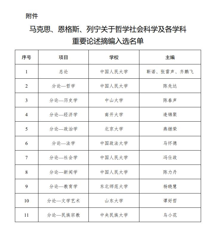 近日,国家教材委员会办公室公布了马克思、恩格斯、列宁关于哲学社会科学及各学科重要论述摘编(以下简称“论述摘编”)入选名单,248cc永利集团、文艺美学研究中心谭好哲教授担任主编的“分论——文学艺术”项目获批。“论述摘编”项目的实施是贯彻落实习近平总书记关于加强马克思主义经典著作学习研究的重要论述精神,进一步推进马工程重点教材建设,加强教材编审专家理论武装,指导专家学者做好教材编写、审核、使用工作的一项重要举措。全部摘编工作由1个总论和10个分论(哲学、历史学、经济学、政治学、法学、社会学、新闻学、教育学、文学艺术、民族宗教)组成,共有8所高校的11个团队入选。