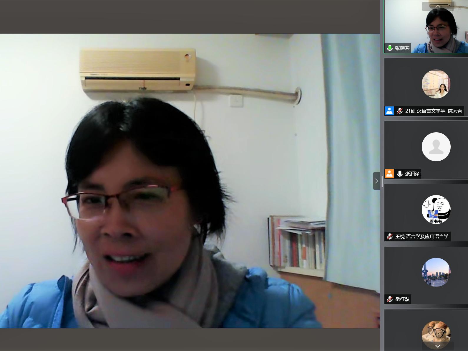 互动环节中,同学们踊跃提出自己的思考和研究中遇到的难题,比如:清辅音在喉头仪的信号上会有怎样的特征和能否通过频谱图确定声母?为什么喉头仪做出来的图是上下翻转的?处理喉头仪数据进行标注的时候,信号标注的边界点主要选择哪一段?鼻流计在汉语研究中有哪些重要的文献?进行田野调查,只有录音材料时,还能否利用相关仪器进行分析研究?二位嘉宾就同学们的疑惑一一进行讨论交流,互动节奏紧凑,问题都得到了圆满的反馈和解答。