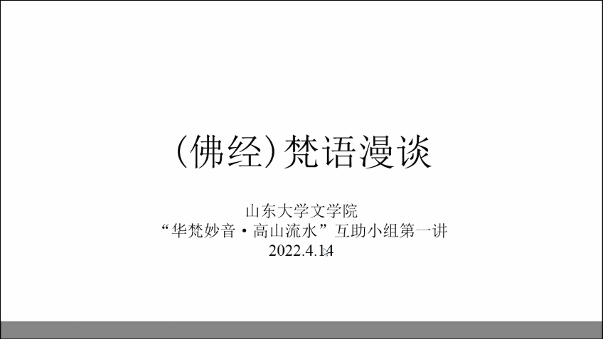 为加强院内师生互动交流,丰富学生封控期间课余活动,4月14日晚,248cc永利集团通过线上会议的形式举办了山大文苑沙龙(第四期)暨“华梵妙音·高山流水”师生互动小组第一讲——“佛经梵语漫谈”活动。该活动特邀徐美德副研究员作为主讲,由2020级本科生王墨杰主持。