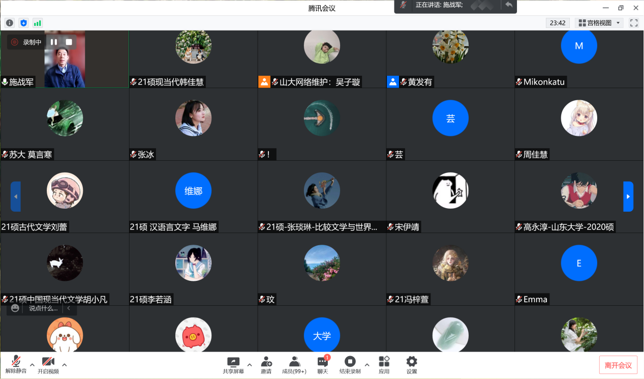 最后,黄发有总结,施战军围绕茅盾《农村三部曲》发散开来,完成了对于中国乡村小说的一次系统性梳理,并指出,如何利用已有的知识储备构建自己的知识体系是当下广大学生应该思考的问题。讲座的内容翔实,视野开阔,为我们学习和研究提供了有效启发。至此,本期讲座圆满结束。