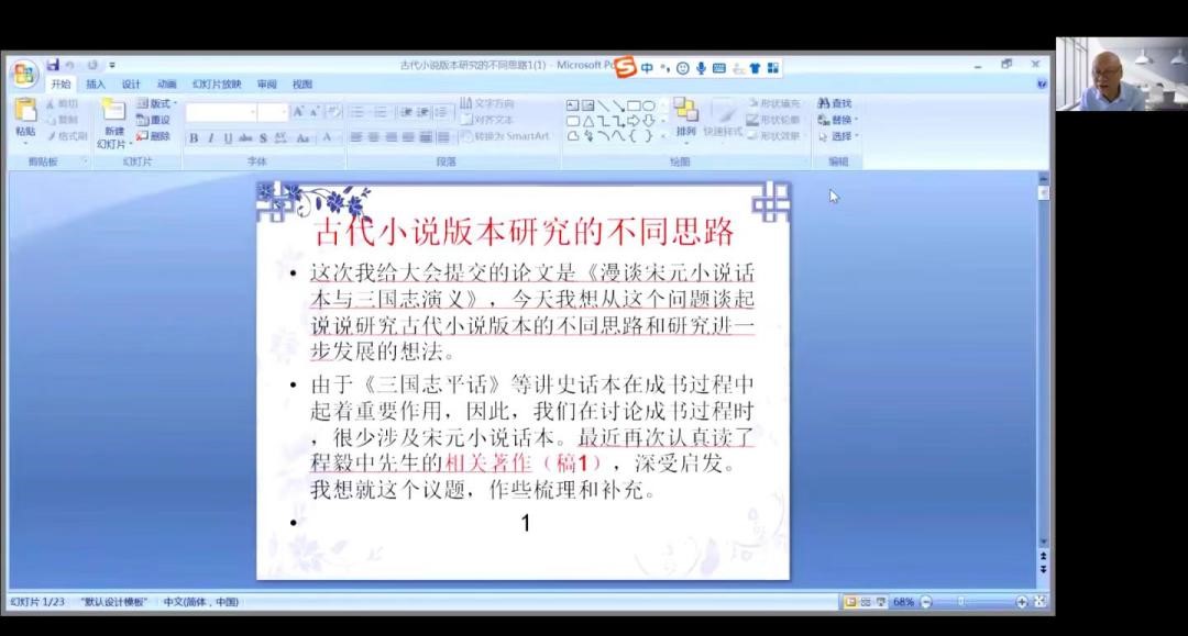 杜泽逊在致辞中介绍了“中国小说论坛”作为248cc永利集团品牌学术活动的情况和本次盛会的筹备情况,对各位嘉宾克服困难积极参与盛会表示感谢,并展示了他所收藏的一部明末清初的笔耕山房刊本小说《弁而钗》。这部珍稀本小说多年前购置,经过修复,品相良好,引起与会专家的特别兴趣。袁世硕先生在致辞中重点讲了他近年通过《录鬼簿》考释而意识到的一个重要问题,即小说作品能够体现作者的世界观和价值观,稽考小说作者也要将其小说作品作为文献资料,并以依据《三国演义》《水浒传》的“隐含作者”稽考其作者罗贯中生平为例,做了半个多小时的系统讲解,给人以很大启发。