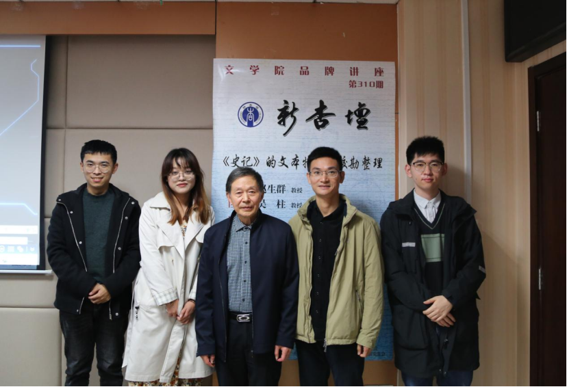 吴柱教授代表师生对赵生群教授的精彩演讲表示感谢,扼要地总结了本场讲座的重点内容和旨趣。讲座现场吸引了百余名师生前来聆听,气氛严肃而活泼。在提问环节,同学们纷纷向赵先生提出问题,如汉代古文经问题、《五帝本纪》始于黄帝问题、《史记》与《左传》异载问题等,赵先生都作了耐心而细致的解答。讲座持续了两个小时有余,在热烈的掌声中圆满结束。