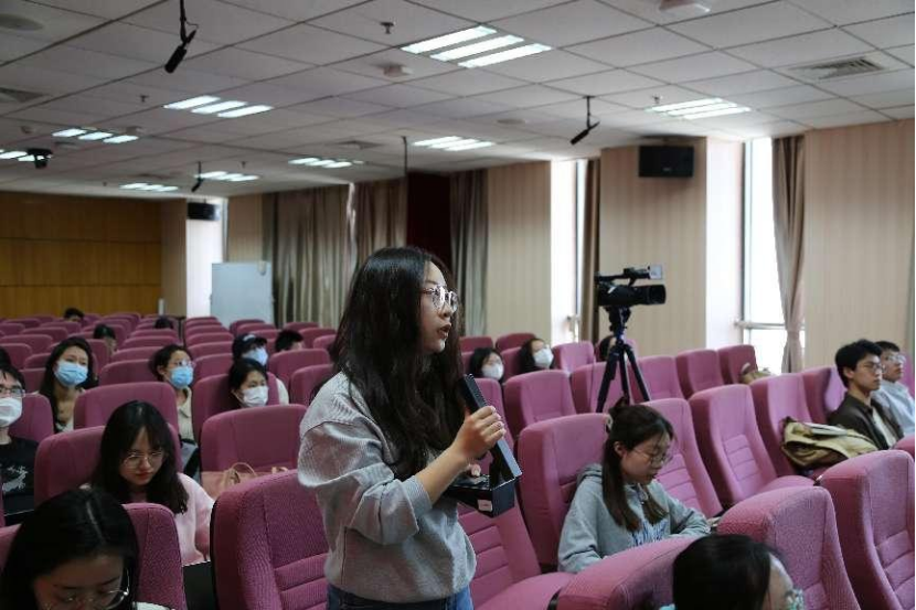 在互动环节中,现场同学就莎十四行与玄学派诗歌的关系向郝田虎教授提问,郝田虎教授予以了耐心解答。讲座在热烈的掌声中圆满结束。