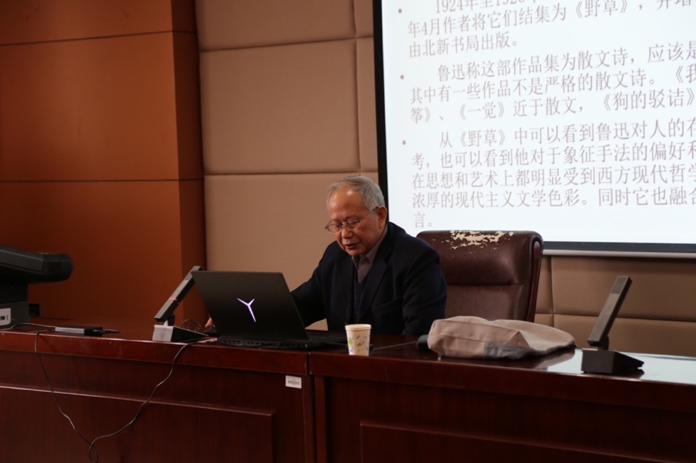 之后,钱振刚教授对《野草》中24篇作品进行文本细读,深入探讨了鲁迅的生存哲学。钱教授结合具体文本和鲁迅的经历,从“对生命的强烈意识和对生存方式的选择”、“矛盾苦闷的心境”、“对黑暗统治的抨击”、“对愚昧灵魂和浇薄世态的嘲讽”、“对青年的批评和勉励”和“与家人、情人的感情纠葛”等角度全面展示了鲁迅带有时代印记的诗化哲学,体现了鲁迅对人的存在方式以及存在环境的艺术思考,并对《野草》中新颖多样的艺术手法进行了简要阐释。