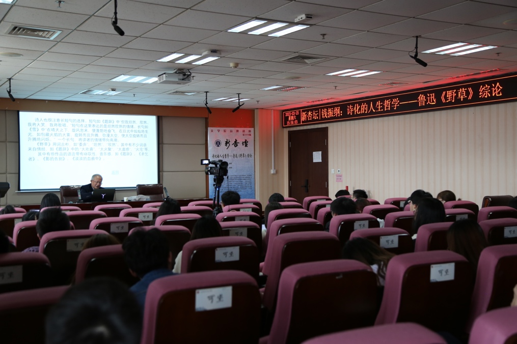 3月25日下午14时30分,北京师范大学文学院教授钱振刚做客第319期“新杏坛”,于知新楼A620室作学术讲座,题为“诗化的人生哲学——鲁迅《野草》综论”。讲座由丛新强教授主持,宫立教授出席,吸引了数百名师生前来聆听。