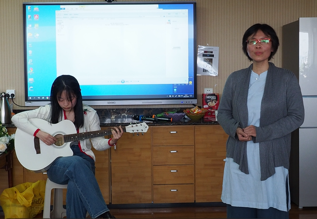 最后张燕芬老师与吕瑞烨同学选择了杜甫的《绝句》进行闽语和粤语二重唱,现场掌声不断。此外,张燕芬老师还现场吟唱了《如梦令》,阐释了“吟诵”和“吟唱”的概念,并鼓励大家只要有心,也可以用自己的母语方言进行诵读吟唱。吟诵,口诵心惟,以声传情,张老师表示吟诵不仅是一门优秀的中国传统艺术,使我们对诗词的理解更加深刻,进一步感受传统文化之美,对我们的身心健康也大有裨益。