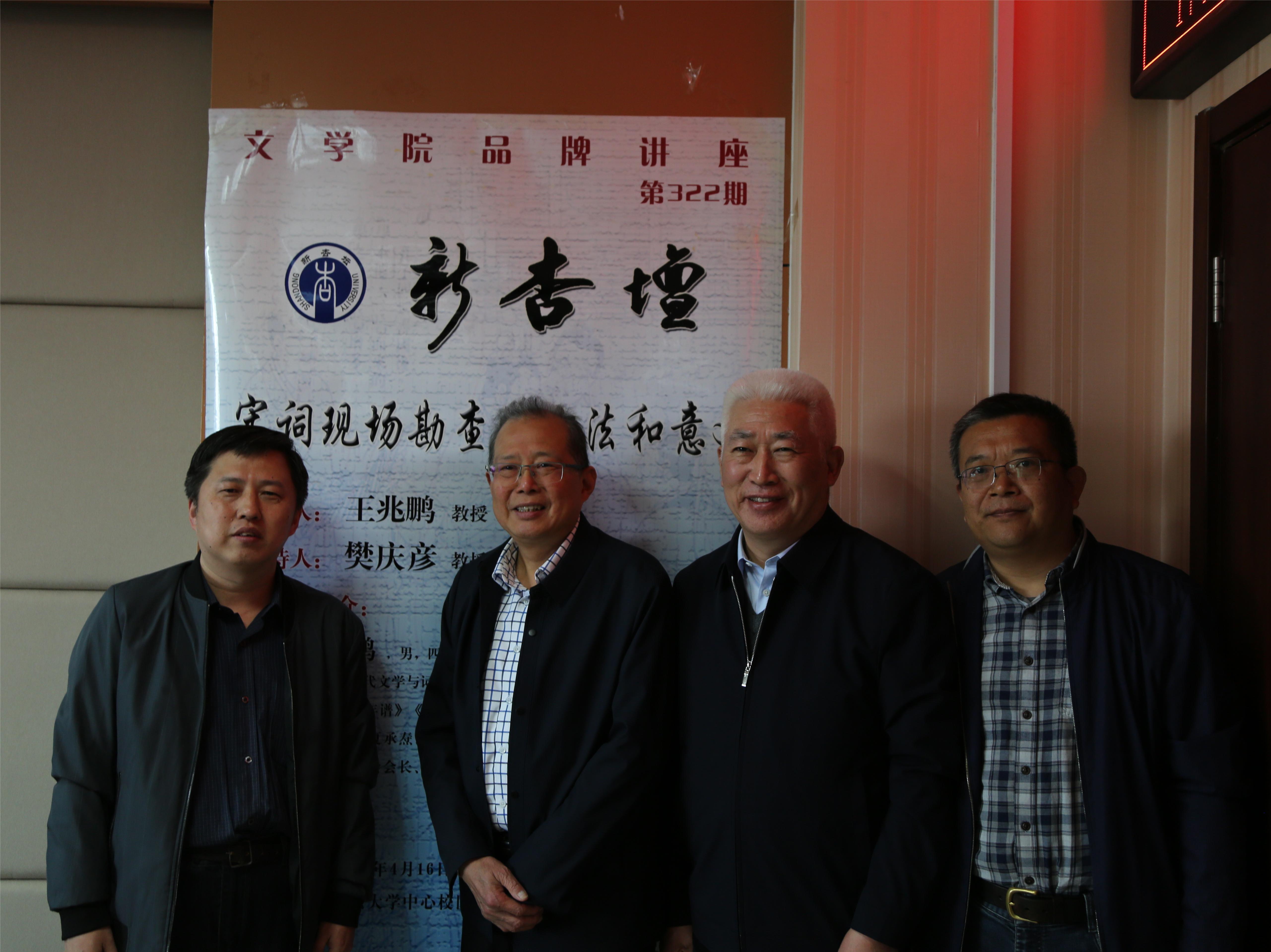 4月16日下午14时30分,四川大学文学与新闻学院讲席教授、博士生导师王兆鹏教授做客第322期“新杏坛”,于知新楼A620会议室作学术讲座,题为“宋词现场勘查的方法和意义”。讲座由樊庆彦教授主持,徐俊教授、孙学堂教授出席,吸引了数百名师生前来聆听。