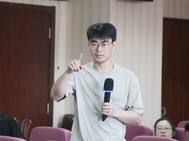 在互动环节中,现场师生积极参与,与刘祥柏研究员讨论了山东和河北方言中部分假摄开口二等字和蟹摄开口三等字的合并和分立、元音高化与声母腭化的关系、吴语宣州片查济方言连读变调和轻声调的处理和认识、语音事实与音系处理之间的矛盾、方言中复杂音段序列的音节处理、北方方言区的同学如何学好音韵学等问题。刘祥柏研究员从不同的角度对这些问题做了分析和延展,与提问者深入交流,并鼓励在座的同学积极学习一门母语之外的汉语方言,尤其是南方方言,将音韵学学习与汉语方言联系在一起,提高理解和分析汉语的能力。