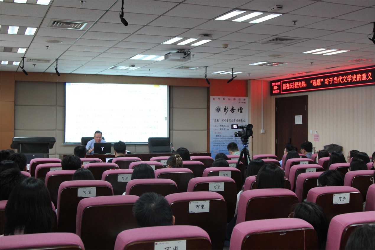6月5日晚7时,中国人民大学文学院教授、博士生导师、中国当代文学研究会副会长、中国人民大学“大华讲席教授”程光炜教授做客第339期“新杏坛”,于知新楼A620室作题为“‘选题’对于当代文学史的意义”的学术讲座。讲座由文学院黄发有教授主持,丛新强教授、宫立教授、周根红教授、史建国教授、邵部老师出席,吸引了近百位同学前来聆听。