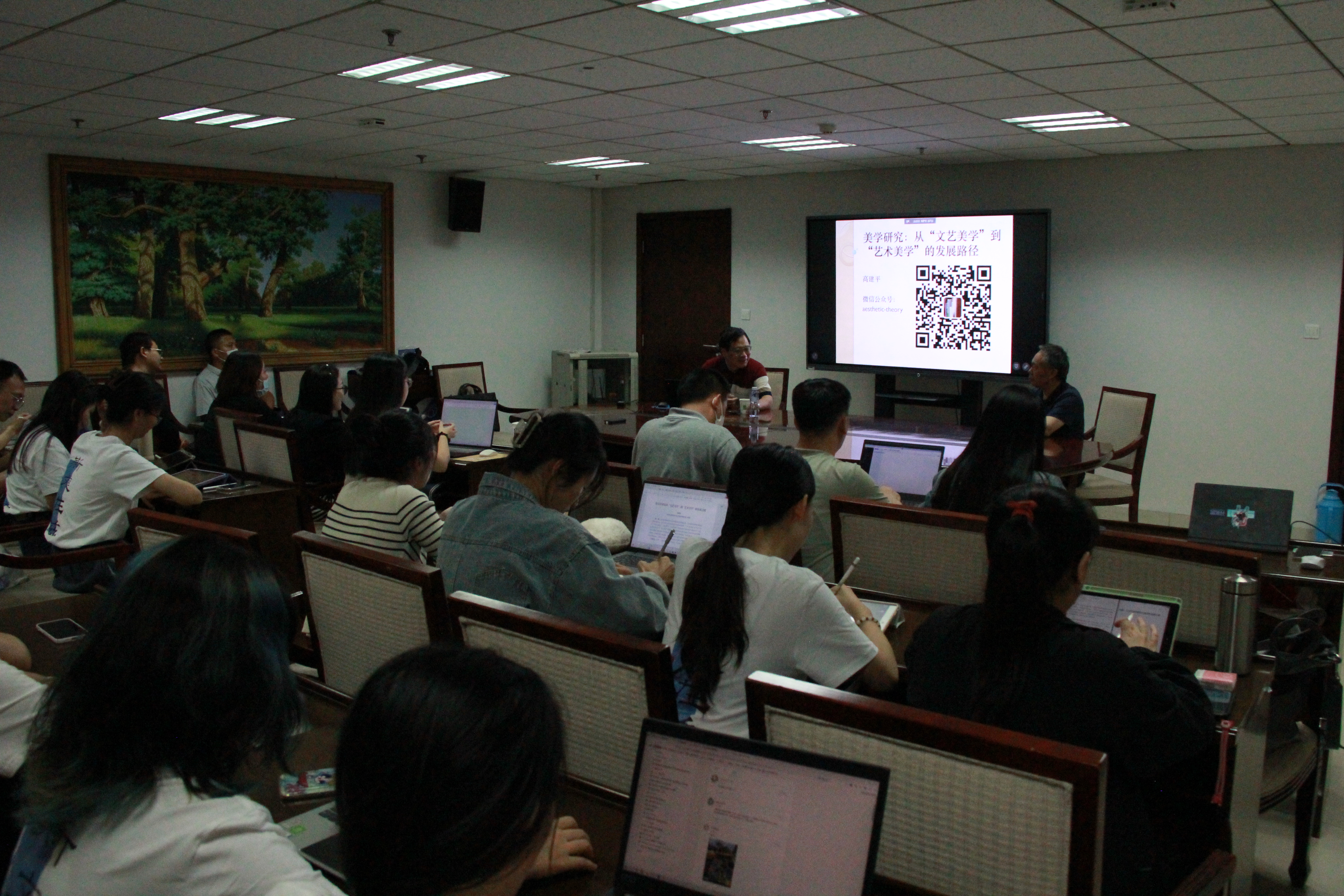 2023年9月22日晚,中国社会科学院研究员、深圳大学特聘教授高建平应邀做客山东大学文艺美学研究中心,为中心师生带来题为“美学研究:从‘文艺美学’到‘艺术美学’的发展路径”的学术讲座,讲座由山东大学文艺美学研究中心主任谭好哲教授主持,文艺美学研究中心范玉刚教授和中心及248cc永利集团四十余位硕博士研究生聆听了此次讲座。