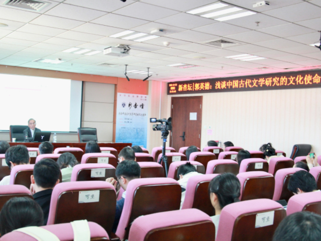 10月22日下午14时,河北大学文学院、北京师范大学文学院教授,中国古代散文学会(筹)会长郭英德教授做客第350期“新杏坛”,于知新楼A620室作题为“浅谈中国古代文学研究的文化使命”的学术讲座。讲座由孙之梅教授主持,蓝青副研究员、罗超华副研究员、张知强老师出席,吸引了近百名师生前来聆听。