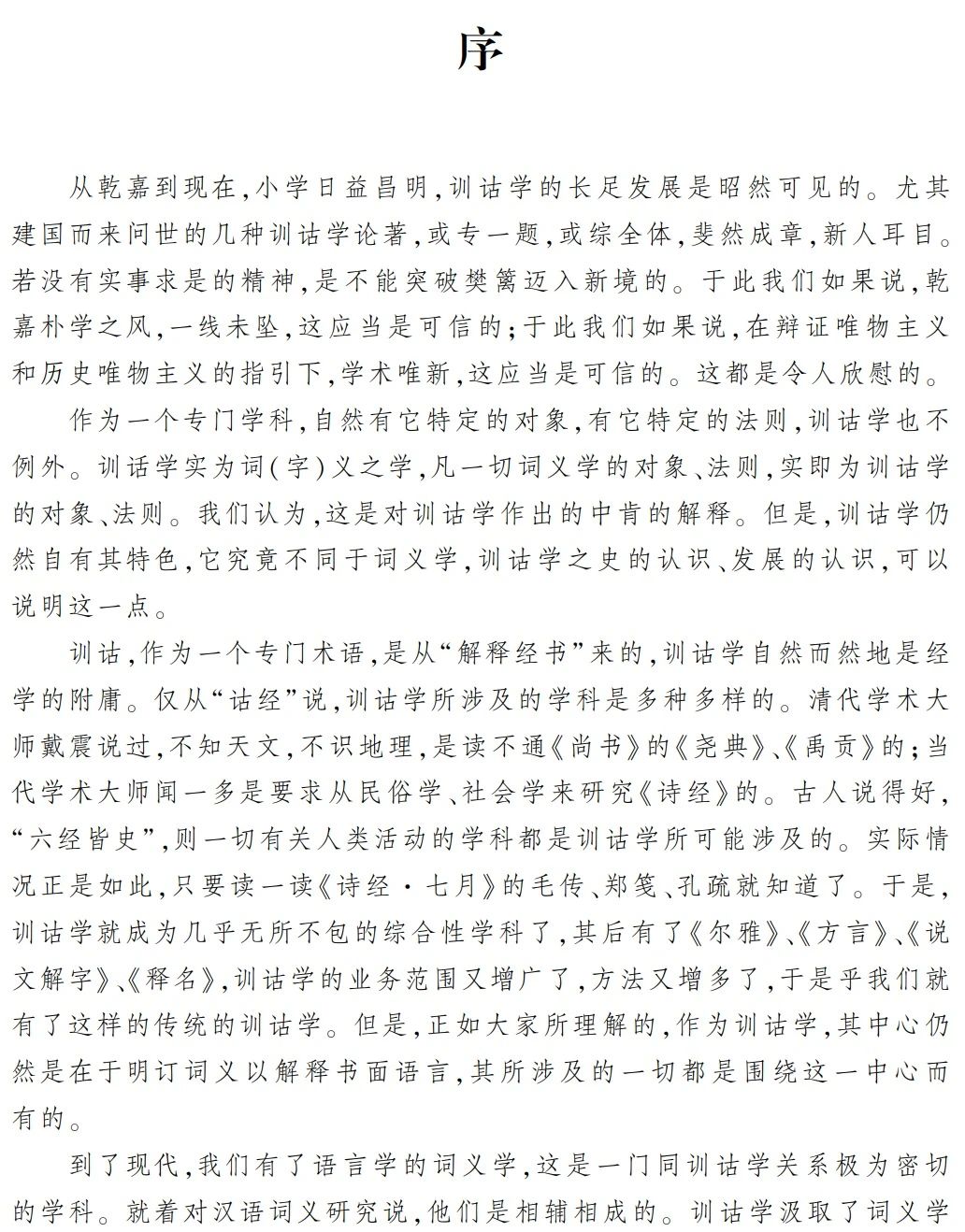 《训诂学》出版30多年来,其中的概念、论断、例证,甚至框架,一直被同行引用不衰。此次重新整理出版,以首版作为底本,同时改正原书中的排校错误,重点复核了全书引文,并订正引文错字以及繁简字转换讹误。
