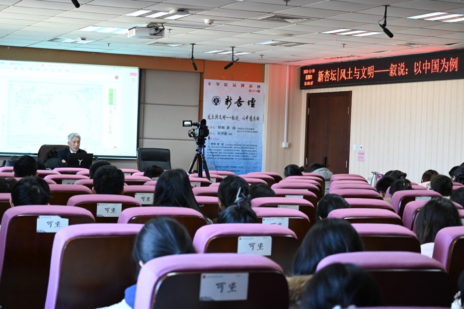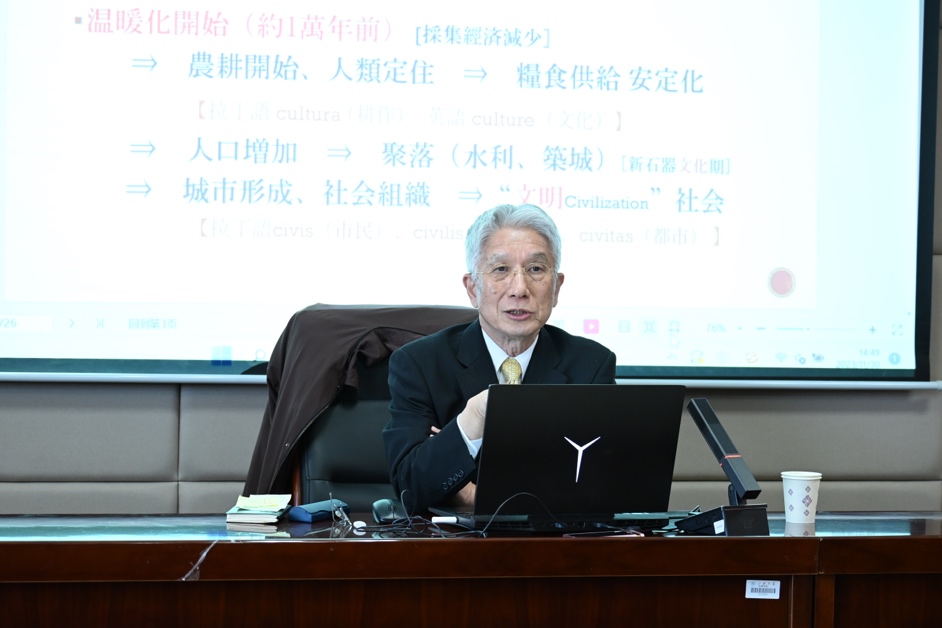 11月30日下午14时30分,早稻田大学名誉教授、南京大学文学院客座教授稻畑 耕一郎教授做客第353期“新杏坛”,于知新楼A620室作学术讲座,题为“风土与文明——叙说:以中国为例”。讲座由杜泽逊教授主持,姚文昌副教授出席,吸引了数百名师生前来聆听。