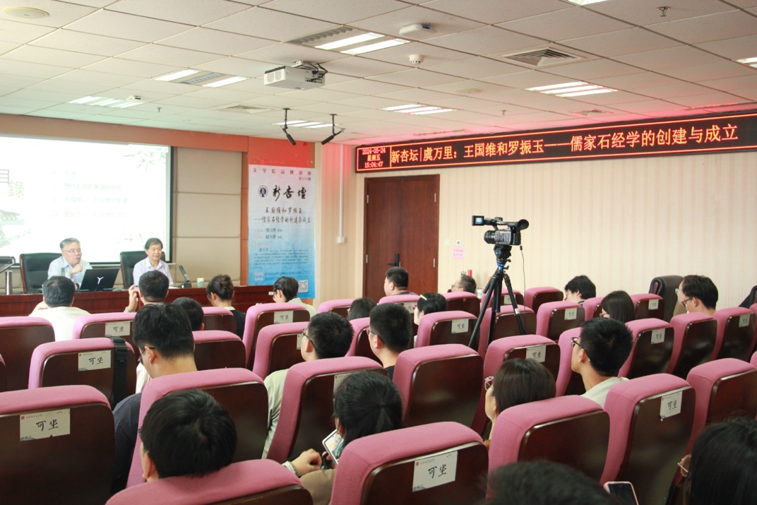 5月24日下午三时,浙江大学马一浮书院虞万里教授做客第374期“新杏坛”,于知新楼A620室作学术讲座,题为“王国维和罗振玉——儒家金石学的创建与成立”。讲座由赵生群教授主持,姚文昌副研究员、张鹏副教授出席,吸引了数百名师生前来聆听。