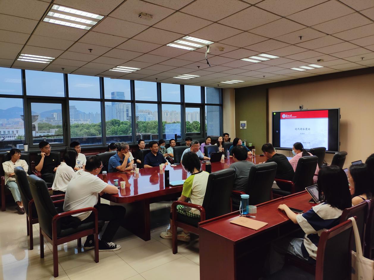 5月29日晚19时,苏州大学马卫中教授与河南大学胡全章教授做客第24期“文苑沙龙”,于知新楼706室作题为“近代文学研究漫谈”的学术沙龙。讲座由孙之梅教授主持,李开军教授、蓝青老师、宋雪老师出席,吸引了数十名师生前来聆听。