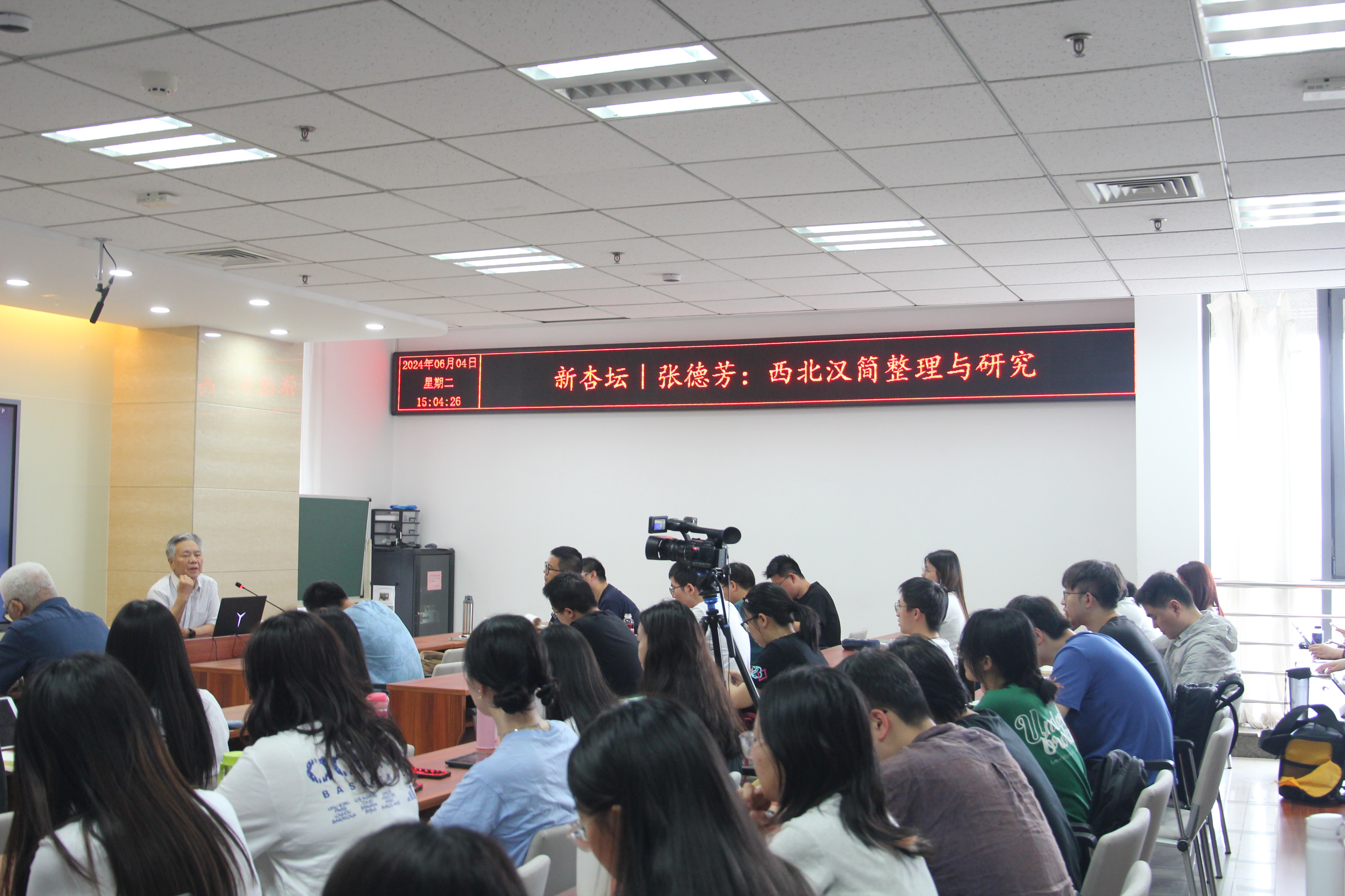 6月4日15时,西北师范大学特聘教授张德芳做客第381期“新杏坛”,于知新楼A606室作题为“西北汉简整理与研究”的学术讲座。讲座由徐俊教授主持,郭春晓书记、侯乃峰教授、王辉教授、高中正教授、伊强副教授、万佳俊老师等出席,吸引众多师生前来聆听。