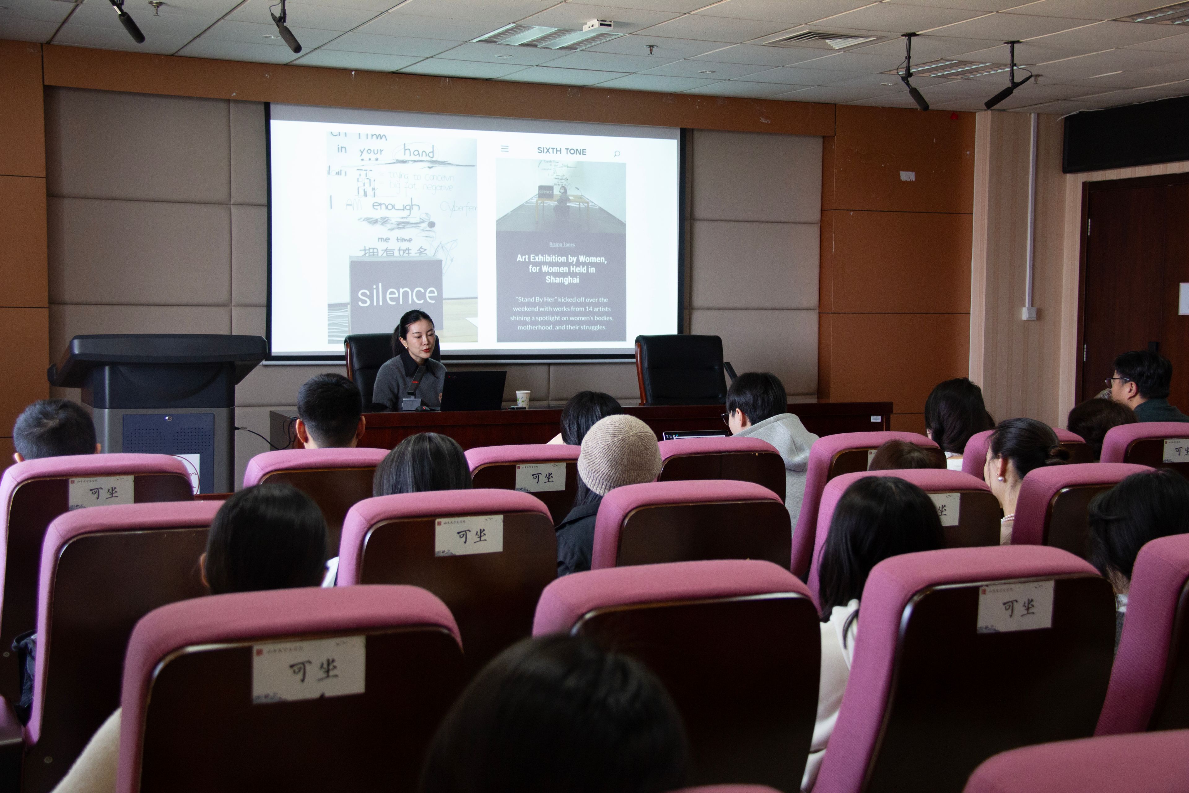 3月8日下午,著名策展人、作家祝羽捷于山东大学知新楼A座620会议室作题为《从边缘到中心:女性创作与策展赋权实践》的讲座。本次活动由韩清玉教授主持,山东美术馆学术研究部主任郭振宇担任与谈人,吸引了众多师生前来聆听。