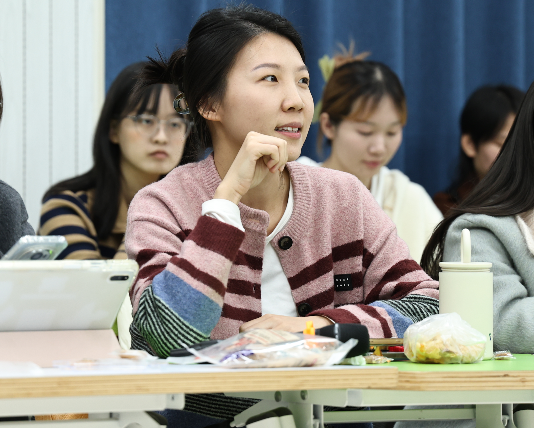 在精彩的方言情话串场游戏后,冉德鸿、苏芷逸主持引入“婚姻”主题讨论环节,引导同学们就婚前准备、校园恋爱与婚姻的关系、婚姻生活与自我成长的关系三个问题展开讨论。同学们或结合个人成长经历分享故事,或联系阅读见闻阐述观点,大家各抒己见、畅所欲言,为婚姻话题提供了多元视角和新颖观点。孙笑澄老师结合同学们的发言总结出指导建议,期望同学们明确自我需求、坚定个人原则,以平等的视角、包容的心态展开交流沟通,逐步深化对婚恋关系的认识。