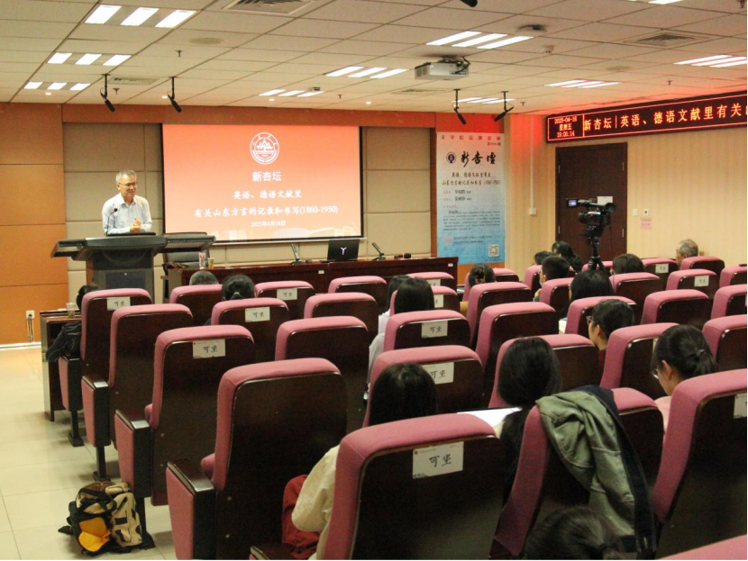 4月18日19时,新加坡社科大学中文系罗福腾教授做客第405期“新杏坛”,于知新楼A620作题为“英语、德语文献里有关山东方言的记录和书写(1860-1950)”的学术讲座。讲座由张树铮教授主持,文学院岳立静教授、刘晓艺教授、黄维军副研究员,国际教育学院许培新副教授、山东师范大学王红娟副教授等参加,吸引了校内外诸多师生前来聆听。