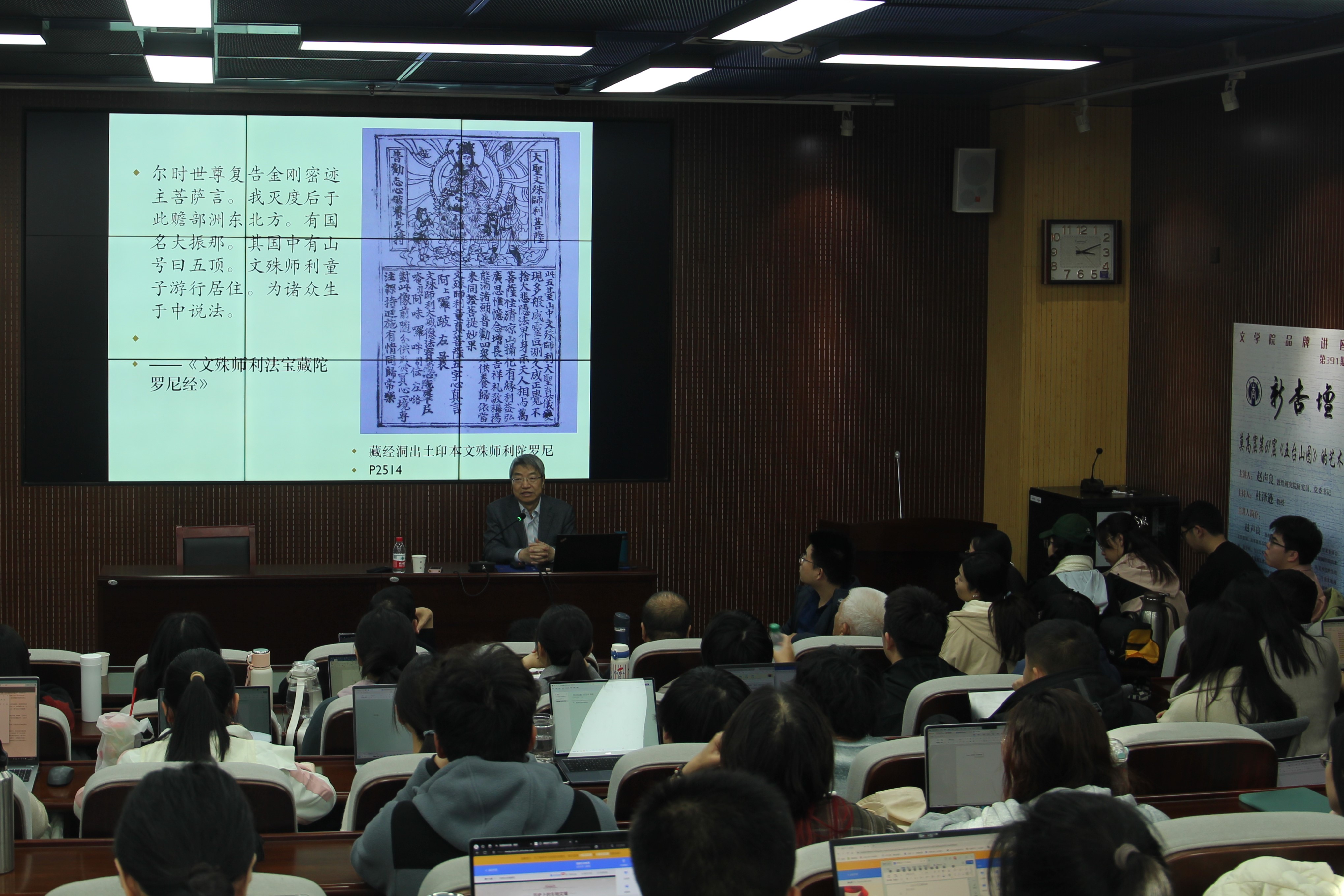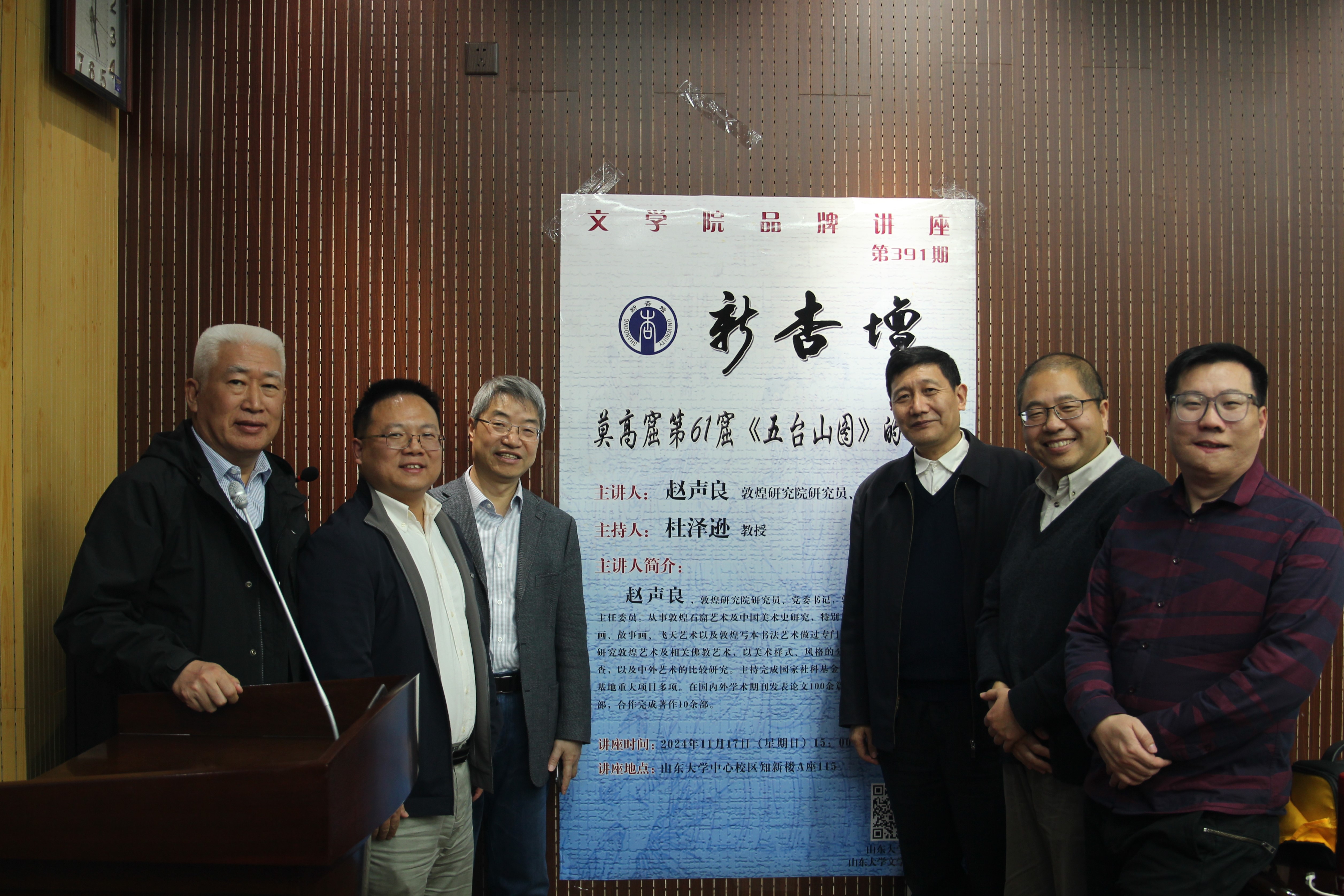 11月17日下午3时,敦煌研究院研究员、党委书记,敦煌研究院学术委员会主任委员赵声良做客文学院第391期“新杏坛”,于知新楼A座115作学术讲座,题为“莫高窟第61窟《五台山图》的艺术”。讲座由杜泽逊教授主持,文学院徐俊教授、张鹏副教授,考古学院副院长唐仲明教授等出席,吸引了200余名师生前来聆听。