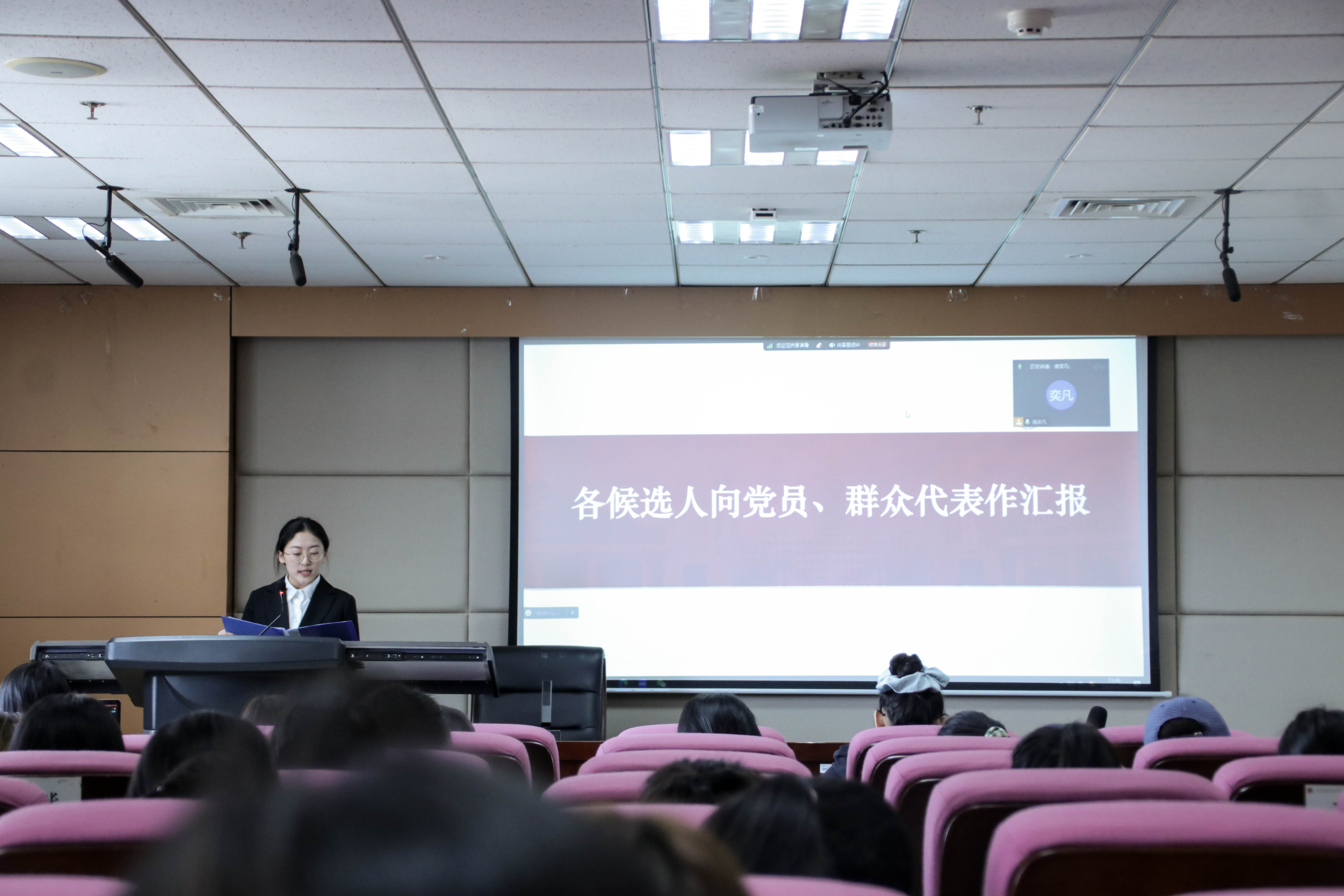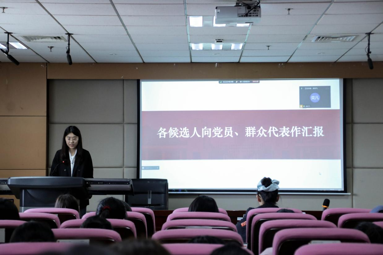 就选拔程序与选拔要求两方面,庞奕凡通过“公平公正”与“思想引领”两大关键词说明了本次双评会的注意事项。她强调,本次选拔关乎未来本科生党支部的前进方向与精神风范,必须遵循公平公正的原则;候选人应将答辩重点放在党性修养与思想品德方面,在思想上发挥先锋模范作用。