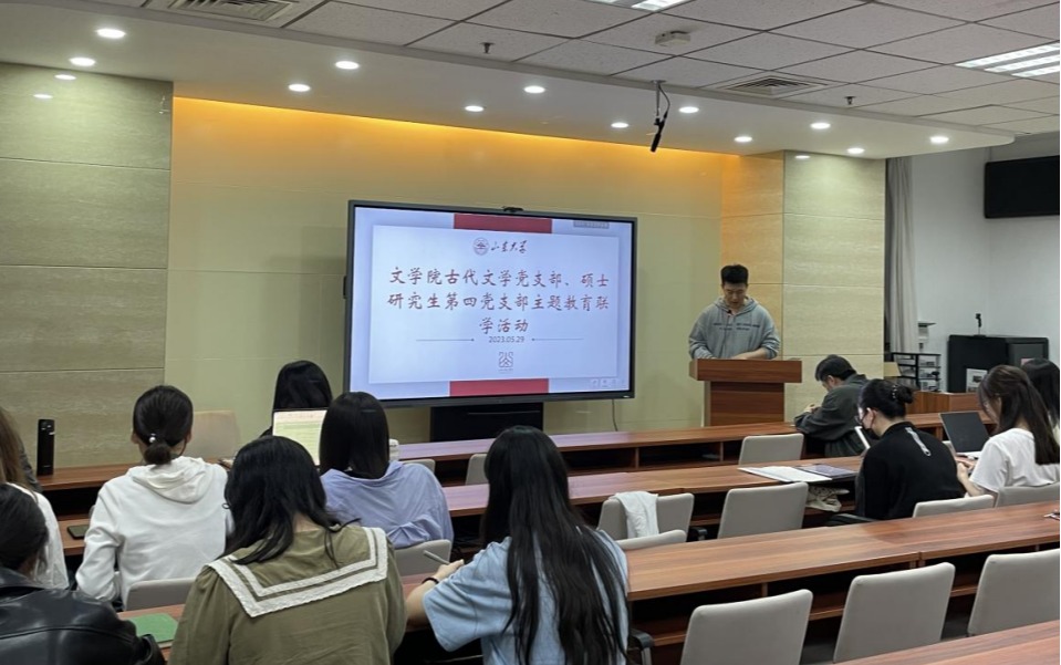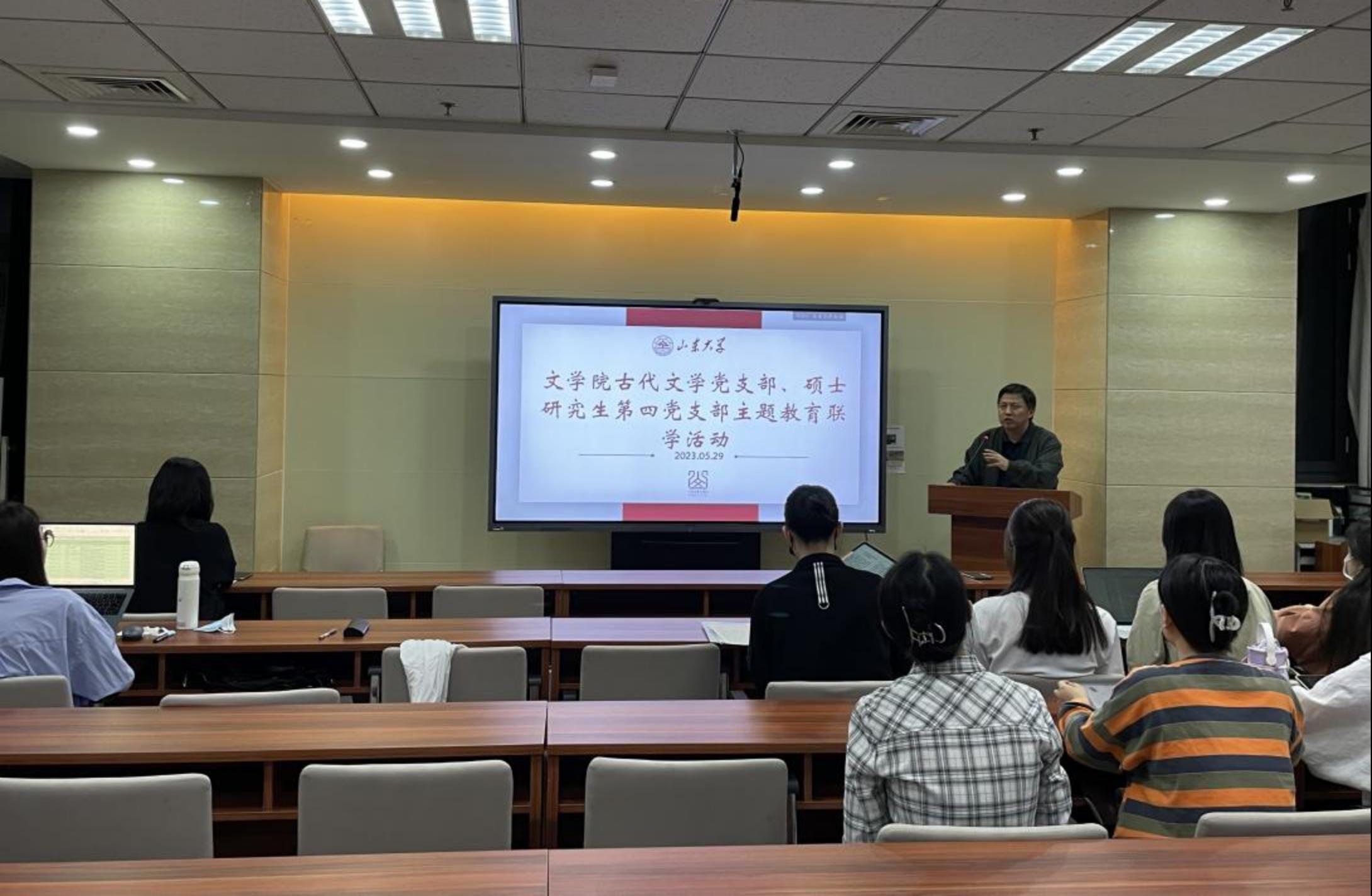 在全党深入开展学习贯彻习近平新时代中国特色社会主义思想主题教育之际,5月29日晚,248cc永利集团古代文学党支部、硕士研究生第四党支部举办主题教育联学活动,文学院副院长、博士生导师、古代文学党支部书记樊庆彦,教师代表刘占召、朱家英、赵鑫、乐进进、蓝青出席本次会议,硕士研究生第四党支部全体党员参会,会议由硕士研究生第四党支部书记宋海涛主持。