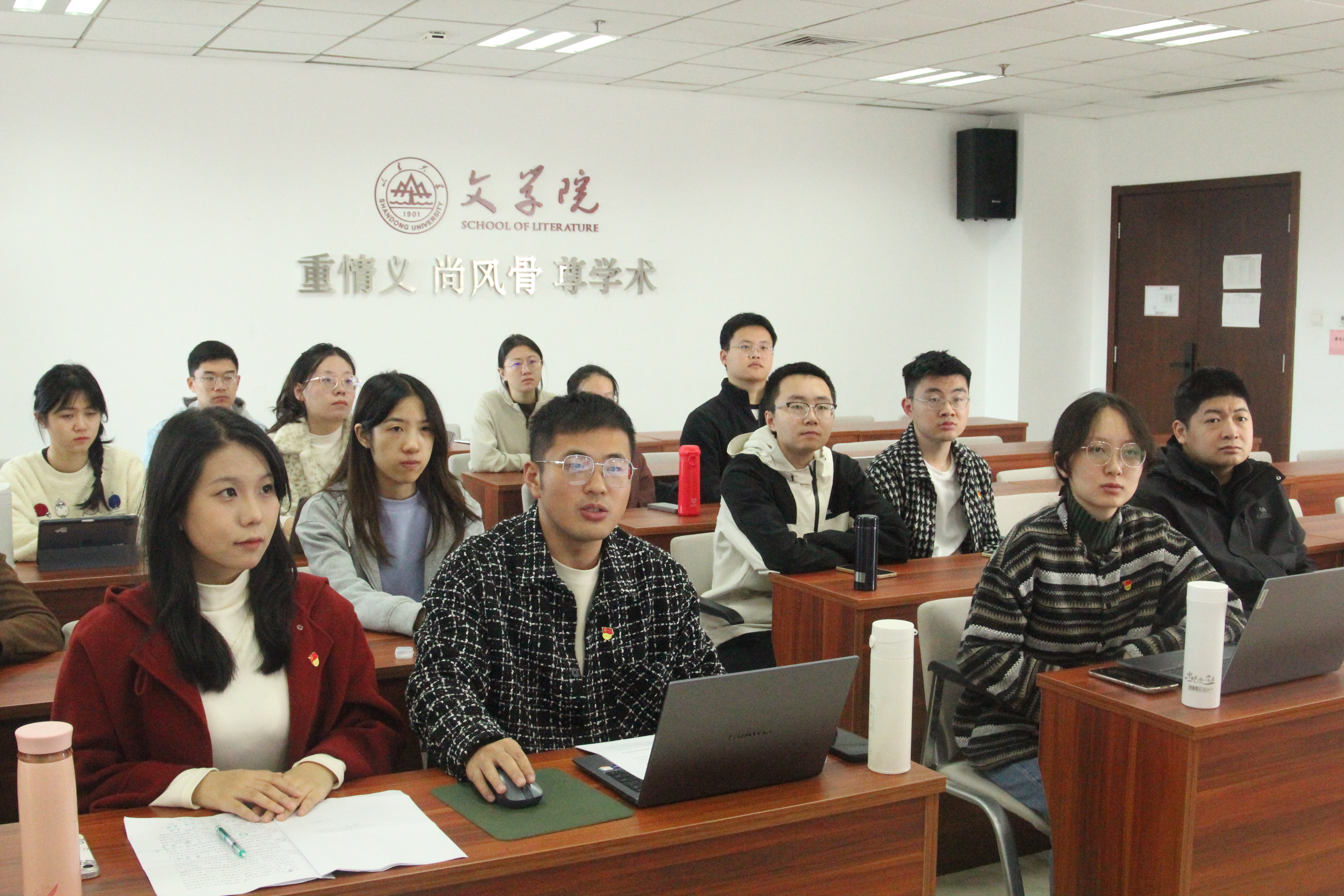 会议伊始,李方政首先对读书会的背景和主题进行了简要介绍。他提到,此次读书会恰逢习近平总书记在文艺工作座谈会上的讲话发表十周年,旨在通过两校支部的交流与学习,深入学习贯彻习近平总书记重要论述精神,擦亮中文新闻学子“赓续中华文脉”的使命底色。紧接着,中国海洋大学文学与新闻传播学院硕士研究生第一党支部书记王雪以“教育”和“文化”两大关键词作主题引入,她深情讲述了两校之间的深厚友谊与共同愿景,鼓励大家以此为契机,共同探讨青年党员在新时代背景下的使命与担当。