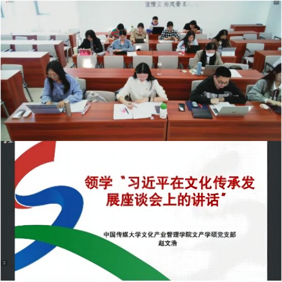中国传媒大学文化产业管理学院学术硕士党支部书记包文文在总结时指出,本次读书会以支部共建的形式搭建了两校交流思想、分享心得的平台,有助于推动学生担承时代使命、践行文化担当,并结合自身专业知识开展实践,为实现中华民族伟大复兴贡献坚实力量。下一步,两支部将继续加强交流合作,构建常态化学习机制,进一步推动学习贯彻习近平新时代中国特色社会主义思想走深走实、入脑入心。