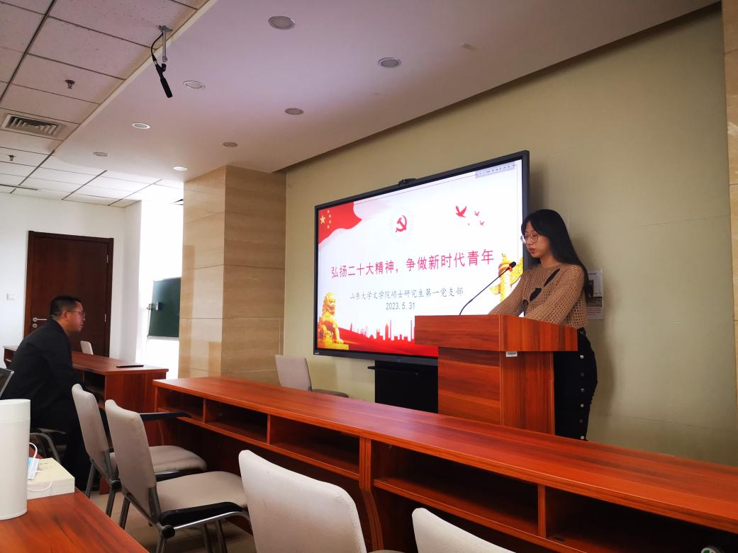 读书会伊始,刘蕾向大家介绍本次读书会主题,并表示此次读书会旨在深入学习党的二十大精神内涵。随后,党支部六位同学结合自身专业及生活阅历,分享了学习思考与感悟。
