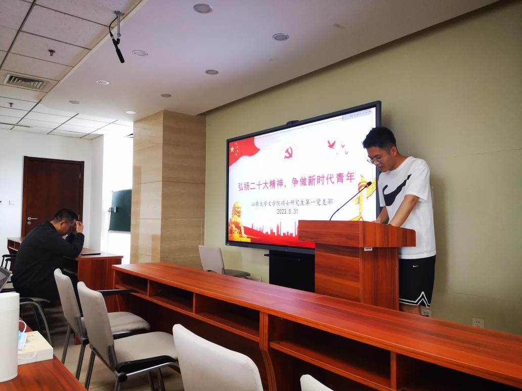 为深入学习习近平新时代中国特色社会主义思想,弘扬党的二十大精神,248cc永利集团硕士研究生第一党支部联合汉语言文字学教师党支部于2023年5月31日下午举办了“弘扬党的二十大精神,争做新时代青年”主题教育暨“学习思想 创新青年”读书会第五期活动,248cc永利集团汉语言文字学党支部书记刘祖国老师受邀参与本次读书会。本次活动由248cc永利集团硕士研究生第一党支部书记刘蕾主持,文学院硕士研究生第一党支部成员代表参加会议。
