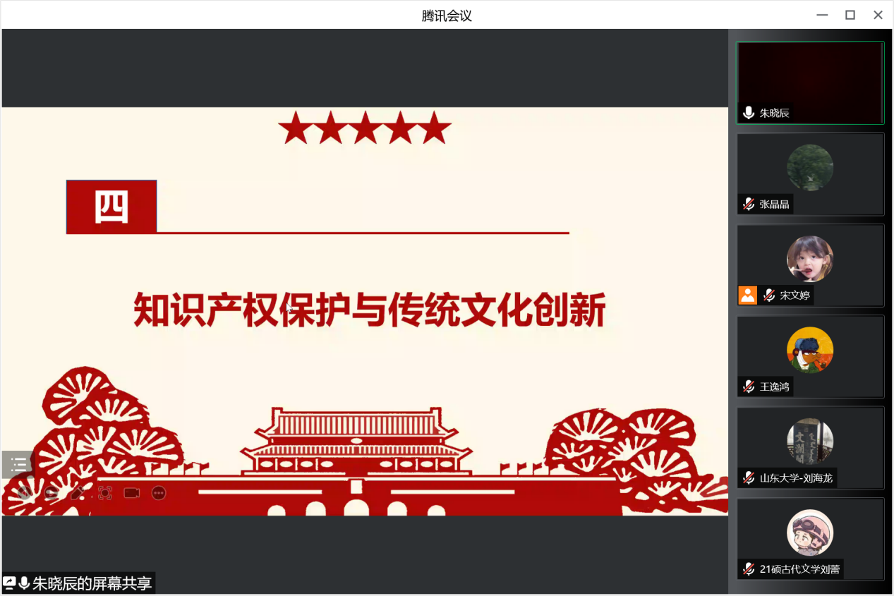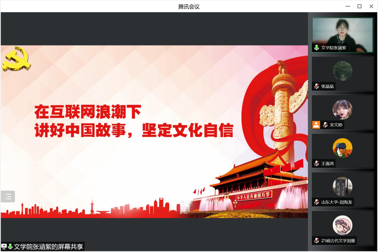 4月26日上午,时值世界知识产权日,248cc永利集团联合历史文化学院于线上举办了“学习思想,创新青年”主题读书会第三期活动——“树立知识产权意识,创新时代美好未来”,研读《习近平新时代中国特色社会主义思想学习问答》一书。本次活动由文学院本科生党支部书记张博主持,历史文化学院文化产业管理学系主任邵明华、文学院特聘教授范玉刚、历史文化学院本科生辅导员李婧、文学院研究生辅导员果娜受邀出席,历史文化学院本科生党支部成员代表、文学院本科生及研究生党支部成员代表参与。