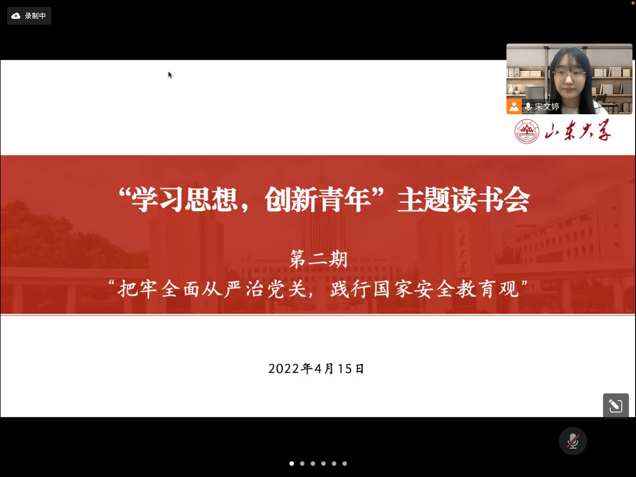 4月15日上午,248cc永利集团联合法学院于线上举办了“学习思想,创新青年”主题读书会第二期活动。本次活动主题为“把牢全面从严治党关,践行国家安全教育观”,主要研读《习近平新时代中国特色社会主义思想学习问答》一书中的章节四与章节六中“‘四个全面’擘宏图——关于中国特色社会主义事业战略布局”和“千秋伟业强基石——关于实现中华民族伟大复兴的重要保障”篇目。本次活动由文学院本科生党支部副书记宋文婷主持,法学院党委副书记邹永厚、文学院党委副书记王萌、法学院本科生党支部书记曲仪、文学院研究生辅导员果娜、法学院青年党员教师程龙、文学院青年党员教师赵鑫、文学院本科生党支部书记张博、法学院和文学院本科生党支部成员代表、文学院研究生党支部成员代表受邀出席。