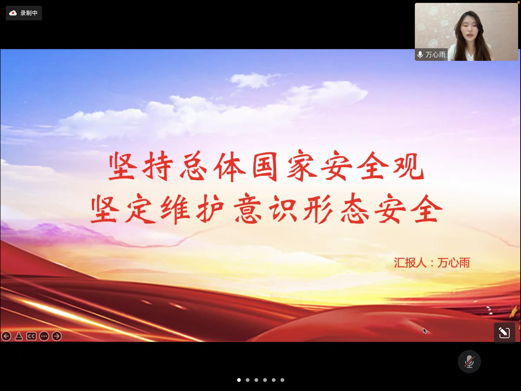 最后,宋文婷做最后小结,呼吁学生党员一同贯彻落实习近平法治思想的重要指示精神,提高政治站位,增强忧患意识,为迎接党的二十大做出自己的贡献。本次读书会为文学院和法学院党支部成员学习习近平新时代中国特色社会主义思想提供了学科交流与互学共建的平台,对青年党员理解从严治党与国家安全教育观具有重要启示。
