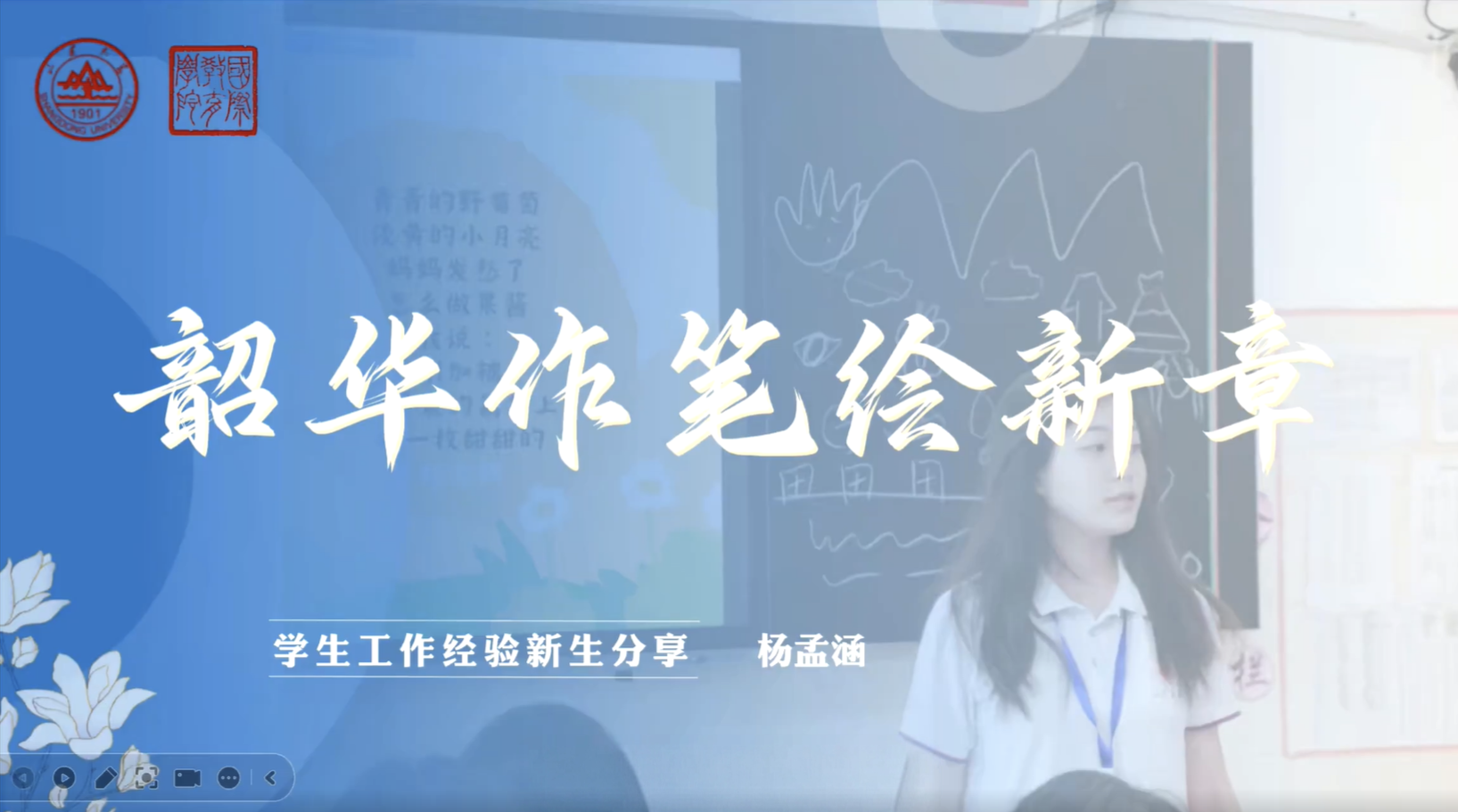 为帮助新生更好适应大学生活、找准自身前行方向,248cc永利集团学生组织于8月15日至8月24日在腾讯会议平台举办了“文韵相传,助力新章”系列新生经验分享会。本次分享会分为学业篇、文体活动篇、学生工作篇三期,每期均设置学长学姐经验分享与答疑解惑两环节,以期全方面、多角度为新生提供思想启示与行动指南。