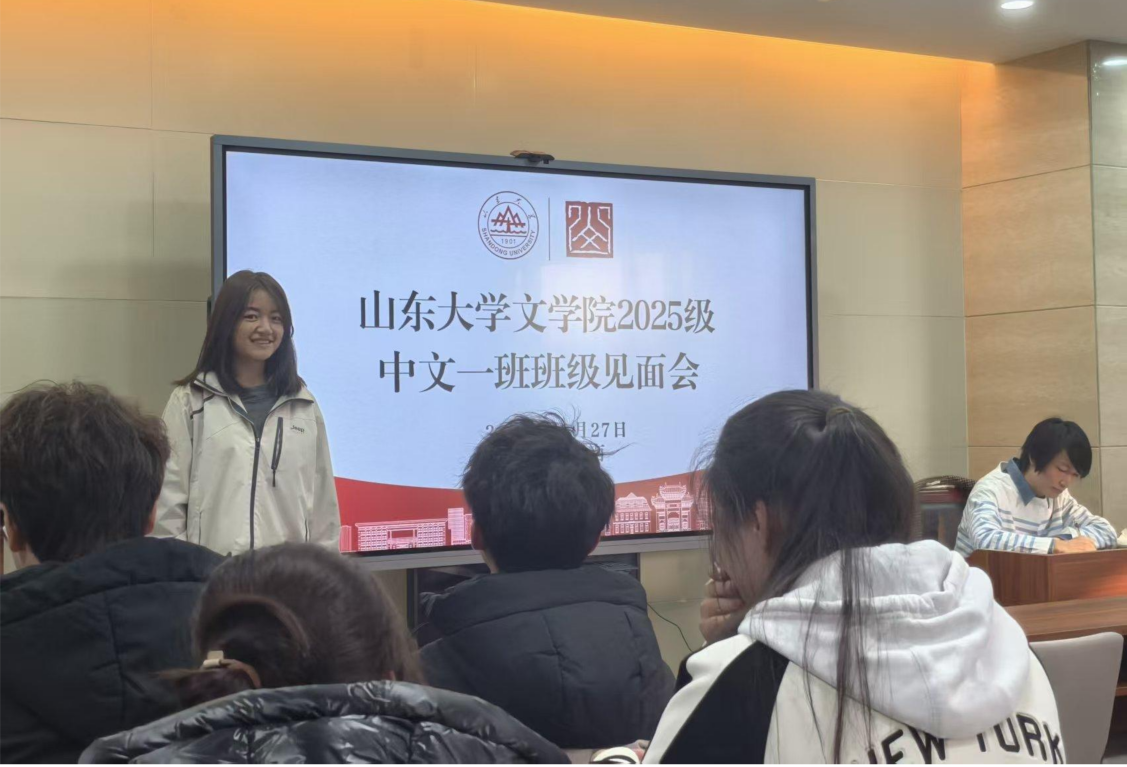 10月28日晚,2025级中文二班于知新楼A座620教室召开班主任见面会。活动由班长盖泽铖主持,班主任程浩芯老师、辅导员佟姜缘老师、2025级硕士生黄冠翔及全班同学共同出席。程浩芯老师以简洁的自我介绍让同学们建立初步认知;随后,同学们通过“随机点名”方式依次分享大学生活感受与未来期待,轻松的氛围进一步拉近了彼此距离,程老师也借此寄语:“希望大家在山大文学院的四年里,探索自我、丰富自我、发展自我。”黄冠翔以“过来人的视角”分享大学成长经历:他坦诚讲述自己从“迷茫颓废”到“积极向上”的转变过程,并给出切实建议——明确自身核心需求与目标、为生活“创造锚点”以构建稳定秩序、坚持记录青春轨迹,同时提醒同学们劳逸结合、关注身体健康、多读书多走多看。