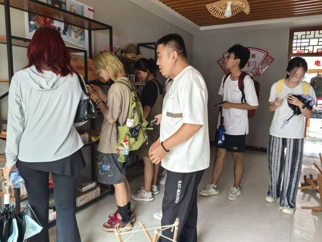 团队7月中旬—8月上旬在山东省临沂市沂水县杨庄镇及周边乡镇开展集中实践。实践初期,团队开展推普调研,采用“问卷+访谈+座谈”方式,梳理出“农村电商语言障碍”“高龄人群对普通话了解少”等痛点,为后续工作提供了依据。实践中期,进行“推普技能+”定制化培训,团队为蓝莓种养殖户和“沂蒙小棉袄”非遗产业等电商从业者开设“普通话与技能”课。调研团展开语言教育帮扶,与杨庄镇中小学和幼儿园结对,讲解发音技巧,组织“拼音闯关”等活动,夯实学生语言基础。团队立足当地丰富的乡村文化,设置书法楹联展示区,整理沂蒙小棉袄等非遗故事,助力非遗传承与旅游宣传,激发村民对普通话和本土文化的热爱。在线上活动中,团队设计录制2条推普数字短音频,聚焦直播和日常交流用语,通过村微信群传播,获群众“学得会、用得上”的积极反馈。