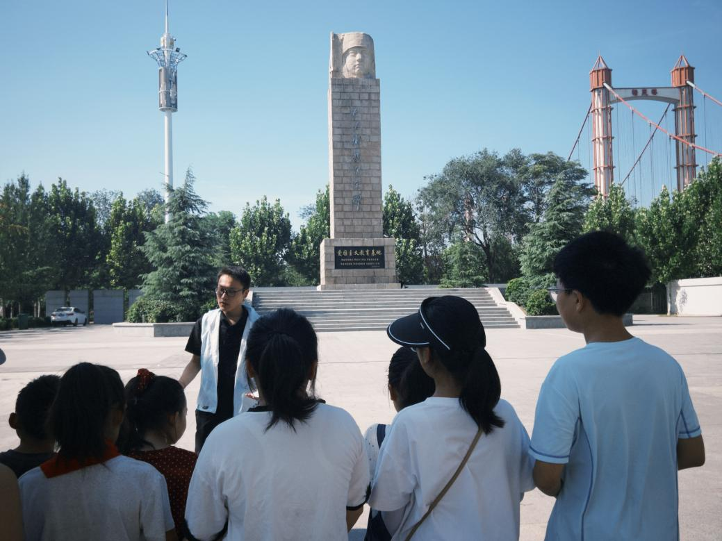 在青少年教育方面,团队充分发挥专业优势,开展了为期五天的暑期支教活动。课程体涵盖非遗技艺、安全知识、红色教育等内容,既扎根传统文化,又关注现实需求。适逢抗日战争日本投降80周年,团队特别组织了"童心向党忆峥嵘"系列活动:在七七纪念碑前讲述抗战历史,带领青少年缅怀先烈;通过红色剧本杀的形式,让孩子们在角色扮演中感悟革命精神。这些活动让孩子们在实践中学到了知识,在体验中厚植了家国情怀。