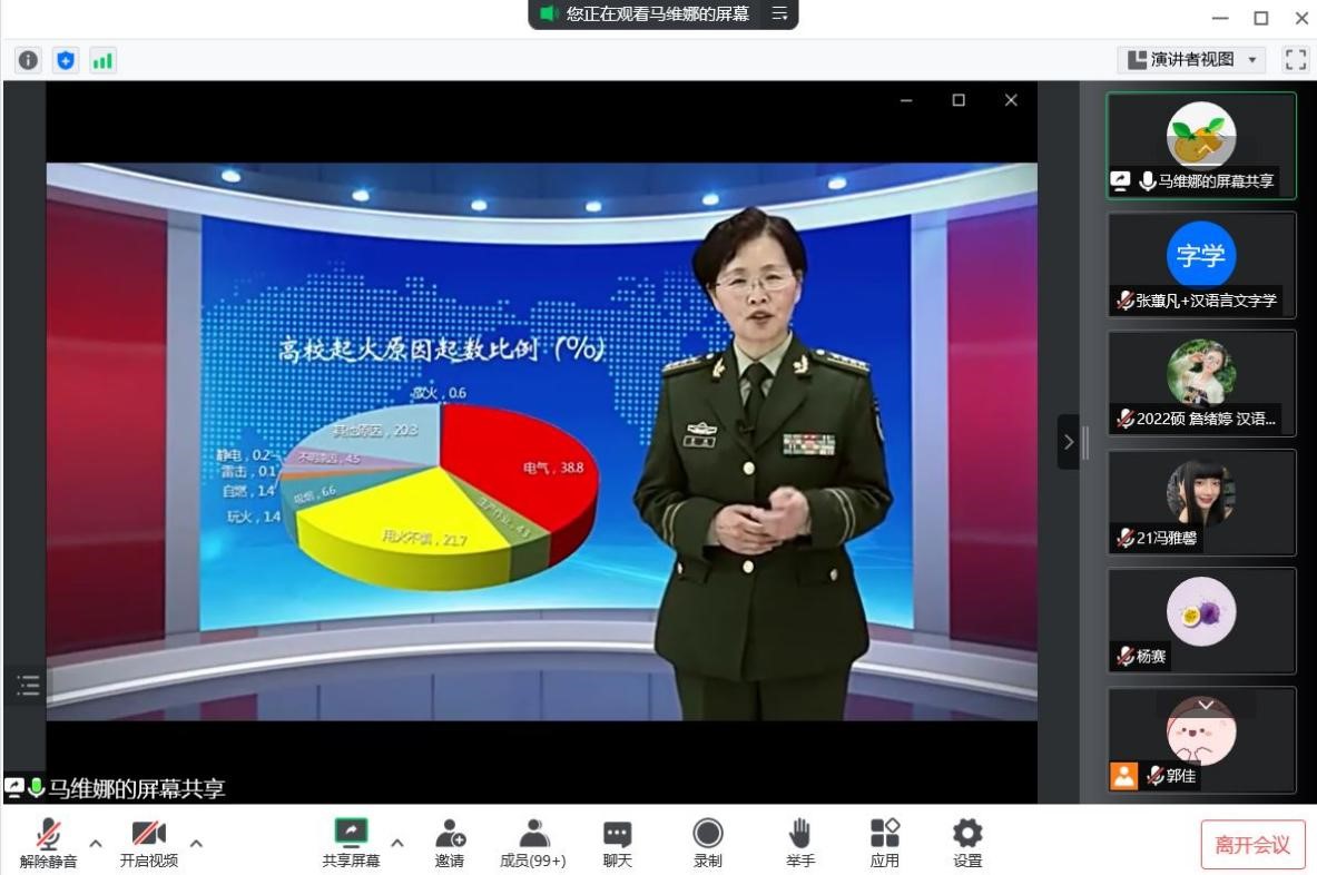 为切实增强研究生新生的安全防范意识,提高学生应对突发情况的的应急处理能力,248cc永利集团于9月9日上午举办了“安全教育云讲堂”线上讲座。本次讲座由文学院2021级硕士马维娜、杨赛和郭佳主讲,文学院2022级全体硕士研究生参与了本次讲座。