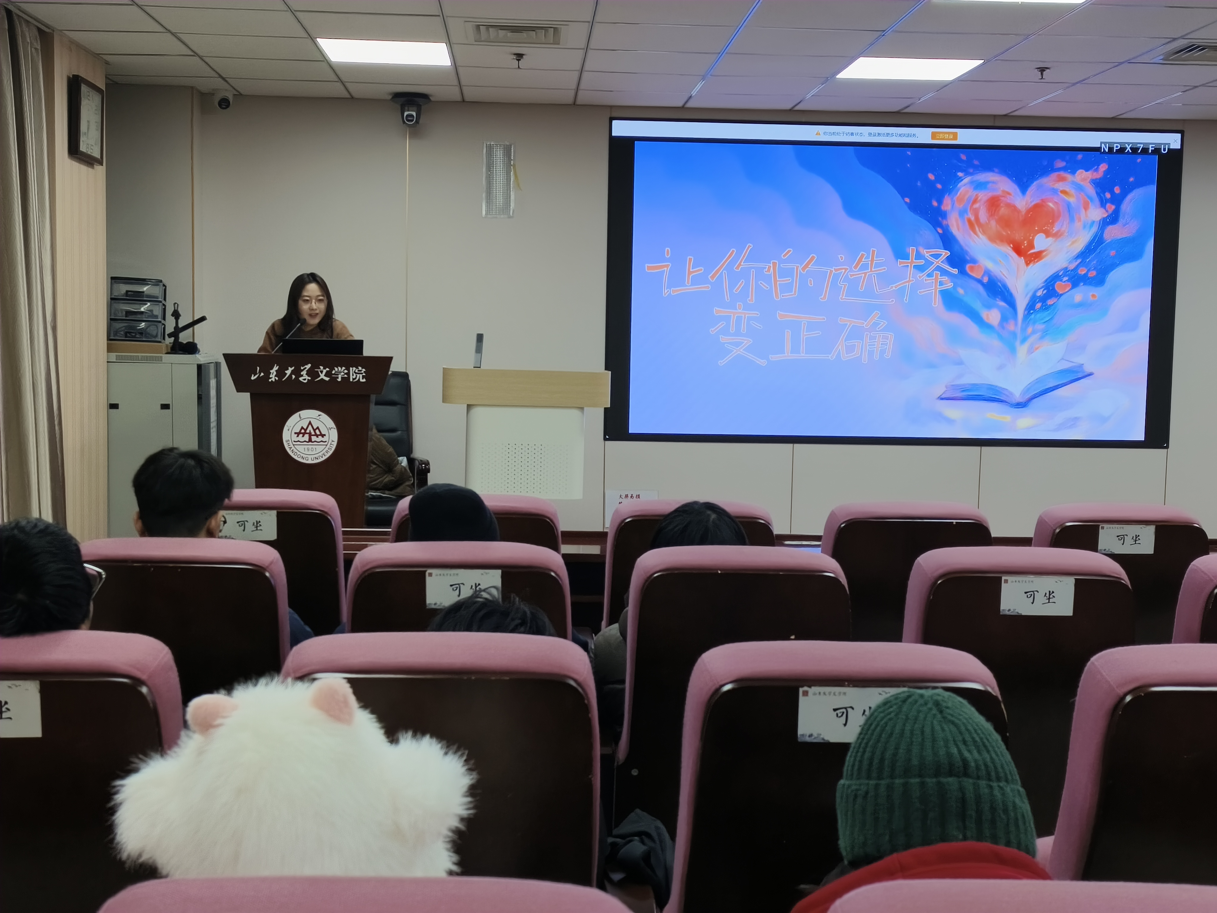 为助力毕业年级学生缓解择业升学期带来的心理压力,引导学生在人生关键阶段保持清醒认知与积极心态,2025年12月12日晚,248cc永利集团于知新楼A座620教室开展“走进心灵”心理健康主题讲座。本次讲座由辅导员侯天语老师主讲,以“在‘未选择的路’与‘已走过的路’之间安放此刻的迷茫”为主题,面向全体2022级本科生,聚焦毕业前夕普遍存在的焦虑与抉择困境。