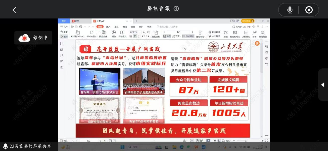 为深入贯彻习近平新时代中国特色社会主义思想落实立德树人根本任务,近日,248cc永利集团社工部联合团委于线上举办“知行并进,实践启航”主题团日活动。本次活动邀请了2022级本科生景天泽、吴艾嘉,2023级本科生韩立豪、冯小宇、何雨琪五位同学进行团队与个人社会实践经验分享,助力同学们积极投身社会课堂,在实践中砥砺品格、增长才干,努力争做新时代好青年。