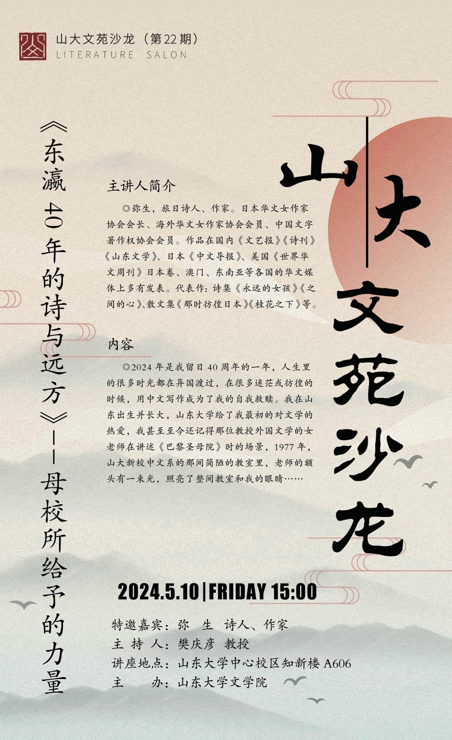 2024年是我留日40周年的一年,人生里的很多时光都在异国渡过,在很多迷茫或彷徨的时候,用中文写作成为了我的自我救赎。我在山东出生并长大,山东大学给了我最初的对文学的热爱,我甚至至今还记得那位教授外国文学的女老师在讲述《巴黎圣母院》时的场景,1977年,山大新校中文系的那间简陋的教室里,老师的额头有一束光,照亮了整间教室和我的眼睛……