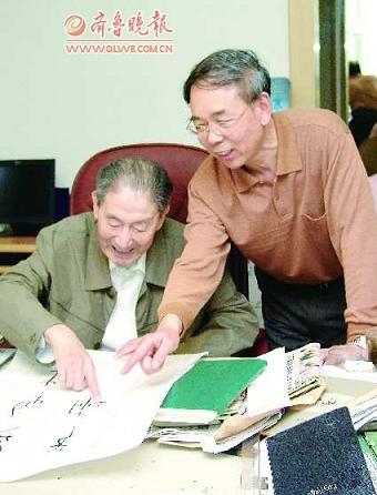 徐超教授(以下简称答):2003年6月,学校决定由离退休教授申报《山东大学人文社会科学硕果基金》项目,项目经费用于资助出版他们晚年的学术著作。蒋先生符合申报条件,但考虑到他年事已高,当时的社科处李红处长和我商量并经过先生同意,决定由我执笔撰写《蒋维崧和他的书法篆刻艺术》,纳入硕果基金项目出版,并破例由我以二人名义提出申请。获批后,李红处长依例将经费使用卡送给先生。记得11月2日先生89岁生日那天晚上,蒋先生在济南天外村酒店将装有上述经费使用卡的信封交给了我。顿时,我感到了一份沉甸甸的责任。这是我第二次感受到责任的分量——第一次,是2001年我受命做他助手的时候。