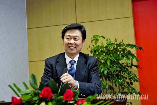他说,今天是山东大学具有历史意义的一天,也是自己回山大三年多来非常高兴的一天。2011年的山东大学可以用璀璨夺目来形容,这一年里学校完成了四件大事:第一件大事是省部共建协议的签署;第二件大事是集中全校智慧制定了“攀越”计划、事业发展规划以及“十二五”规划;第三件大事是成功举办了“110年校庆”;第四件大事是青岛校区建设全面启动并进入实施阶段。山东大学2011年的璀璨夺目,最显著的标志在于人才队伍建设。今年学校新增包括来自北大温儒敏教授在内的五位人文社科一级教授。这是学校人才队伍建设可圈可点的成就,是山东大学真正的希望,也是开拓我们未来事业的重要保证。一个大学的能力,首先看她守护的能力,然后再看创新的能力。这两种能力加起来才是一个大学综合的真正能力。在山东大学历史上光学曾经有传统,但却没有很好地守护。今天几位学者加盟山东大学,是我们守护传统最重要的力量,也是学校发展光学学科的最大希望。相信光学中心在青岛建成以后,山东大学一定会走在全国的前面,也一定会在世界上具有发言权。我们期待着方院士,还有两位今天新加盟的校友,能够为山东大学做更大的贡献。