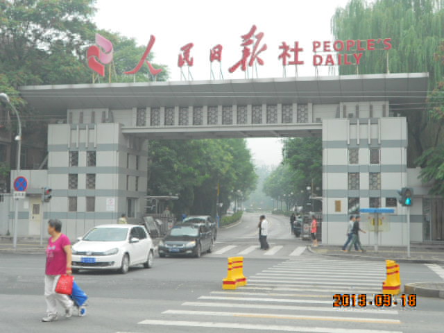 人民日报社的出入程序绝对是我见过的最严格的。由于刚去没有出入证,门口的武警让我去传达室登记一下,传达室的阿姨告诉我必须通过内线联系到我要找的许老师,他接电话证明认识我才可以进去。阿姨对着名单簿找到许老师的电话打过去,恰逢他不在,我被挡在了门外。我拿着开的证明证明了我的身份,阿姨表示没有认识的人绝对不能进去。经过一段时间的软磨硬泡,阿姨终于同意给经社部的其他老师打电话,如果他们知道有我这么个实习生就放我进去,我似乎看到了一丝希望。可是接连打了三四个都没人接,估计都出差去了,希望破灭。
