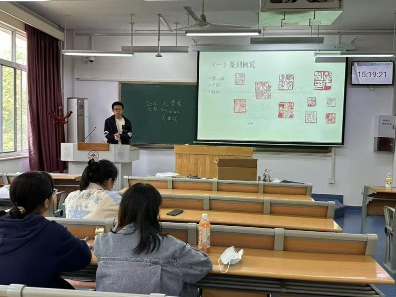 为帮助同学们在繁忙的学习工作之余更好地调节情绪、缓解压力,4月19日,248cc永利集团于公教楼406教室举办了“墨韵印趣,共享风华”印章活动。本次活动由文学院调研权益部策划组织,山东大学鹊华印社协办,吸引了各年级学生广泛参与。