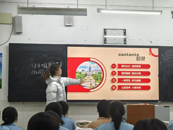 活动前期,团队成员全程参与队伍培训,积极与母校取得联系,精心筹备宣讲物料并制定宣讲方案。在宣讲实施环节,团队成员围绕山东大学百年办学历史、人才培养优势及最新招生政策三大板块,通过图文展示、视频展播等形式全方位呈现学校特色与育人成效。为增强互动性,团队特别设计了“山大印象”问答环节,激发了在场学生的浓厚兴趣。此外,针对不同学生的选科背景,宣讲队结合不同班级的选科组合与兴趣特长,详细介绍了不同学科适配的专业情况,以助力学子明晰未来发展方向。