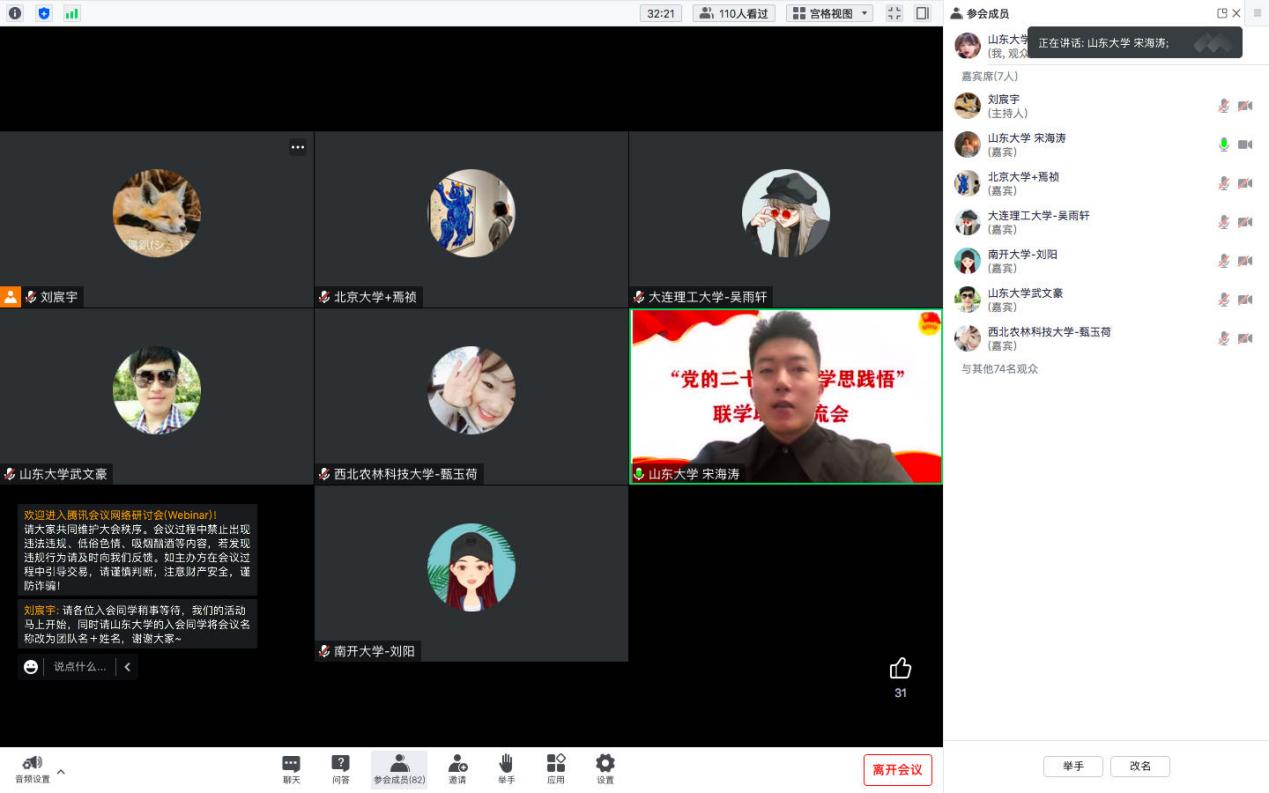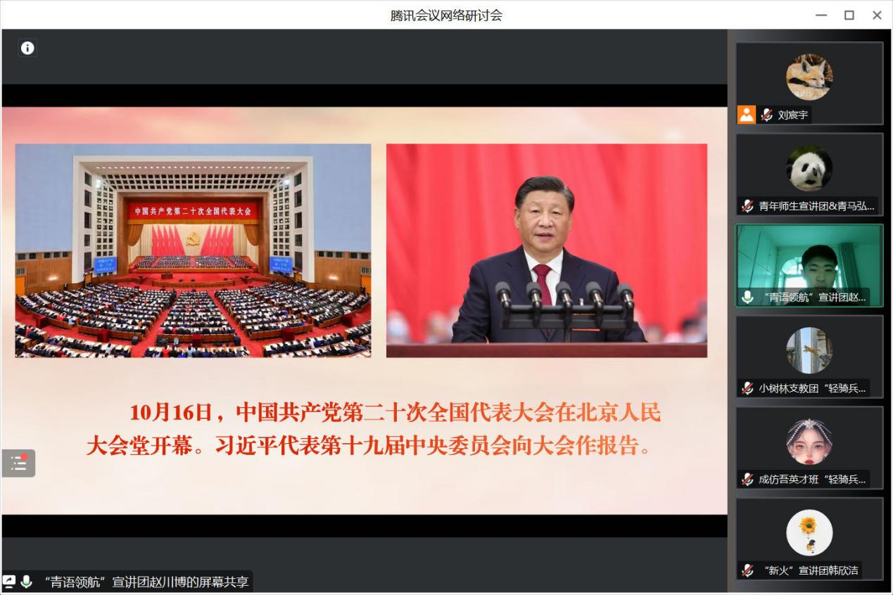 为深入学习贯彻党的二十大精神,推动理论学习入脑入心入行,更好发挥高校学生宣讲团在理论学习教育中的作用,2月3日,248cc永利集团联合共青团山东大学委员会、马克思主义学院、历史文化学院、外国语学院举办“党的二十大精神学思践悟”全国高校青年宣讲团联学联讲活动,来自北京大学、南开大学、西北农林科技大学、大连理工大学、大连海事大学等高校的优秀青年参与其中,248cc永利集团“青语领航”党的二十大精神宣讲团受邀参会并作示范宣讲。
